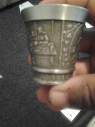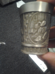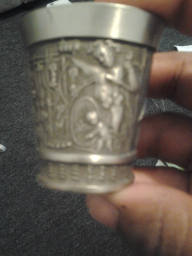 Its a fein zinn cup with what looks like religious engraving.