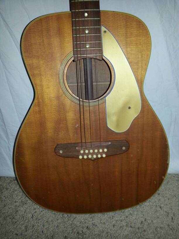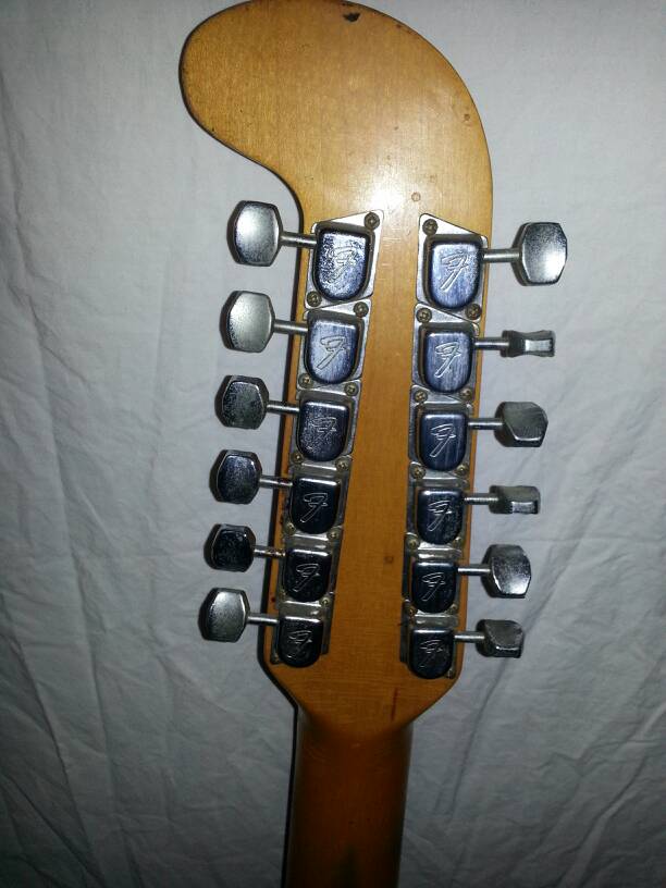 A guitar given to me in 1997 by a friend who had at one time played with Leo Fender. This guitar was given to my friend, Joe many years before giving it to me. It seems to be in fair to good condition, but for what appears to be a few surface cracks in the finish of the body. The neck and bridge nut inlays are missing as well. That is all I know about this item.