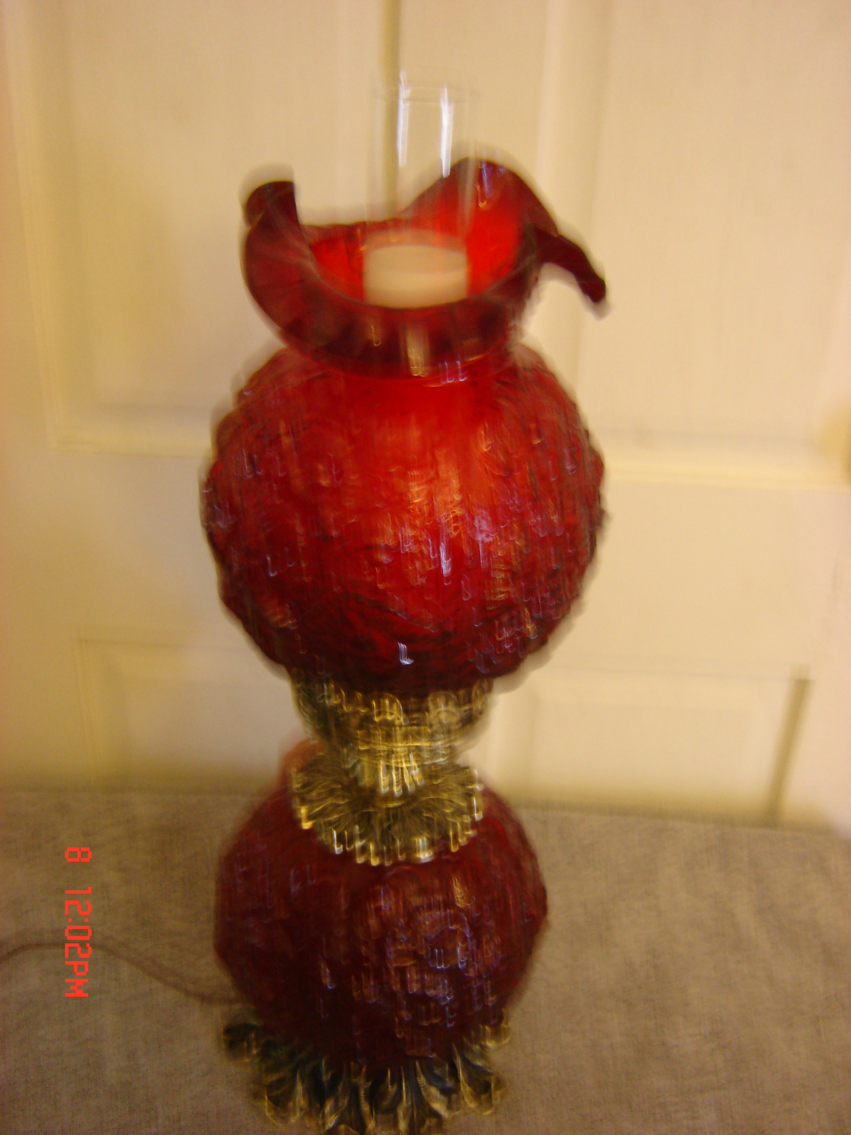 Description:Rose Embossed Cranberry-Fenton Lamp..
