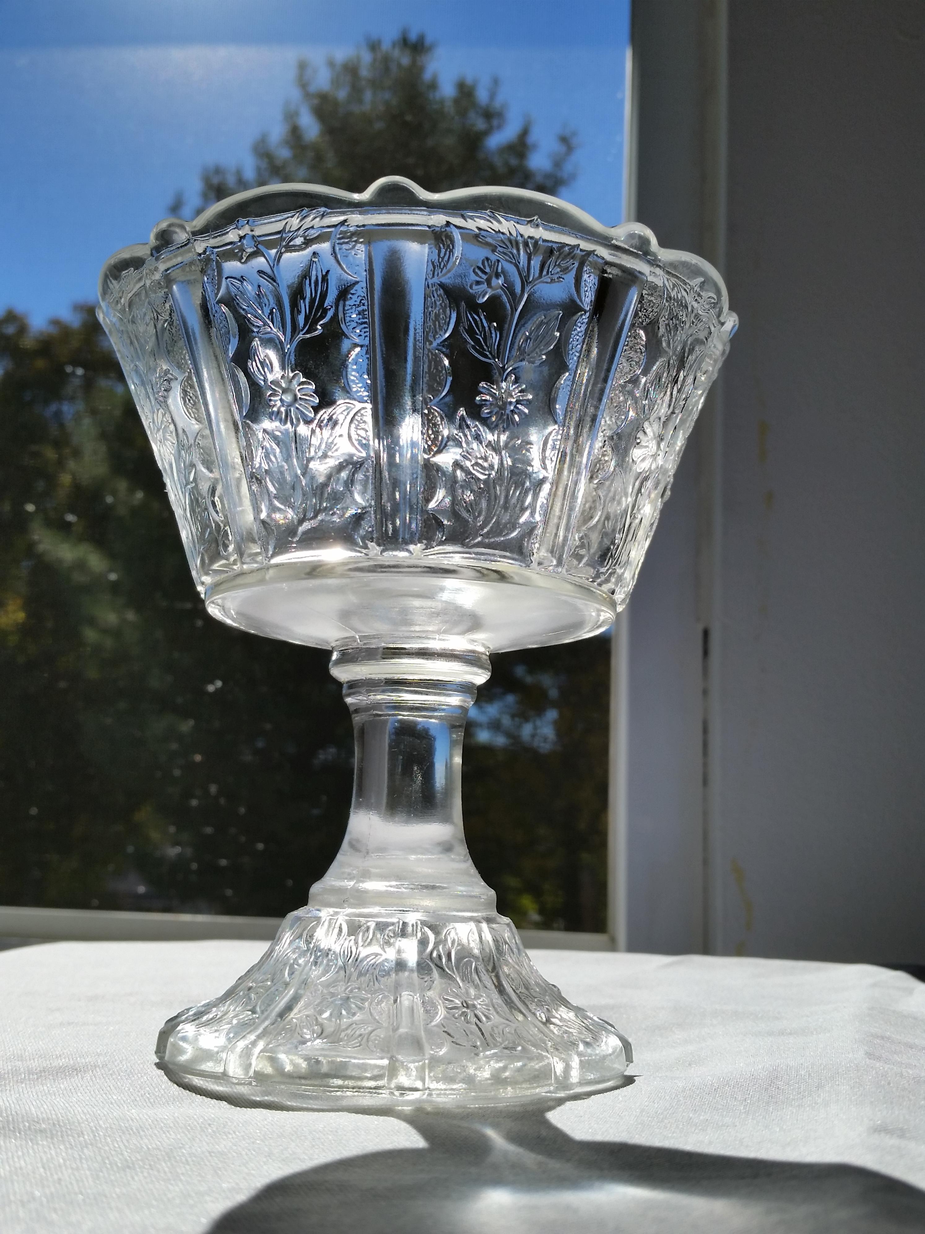 Clear satin daisy pattern - fenton is on the bottom center of this dish- I have found this same dish in a blue carnival glass color but not in this clear one that I own.
