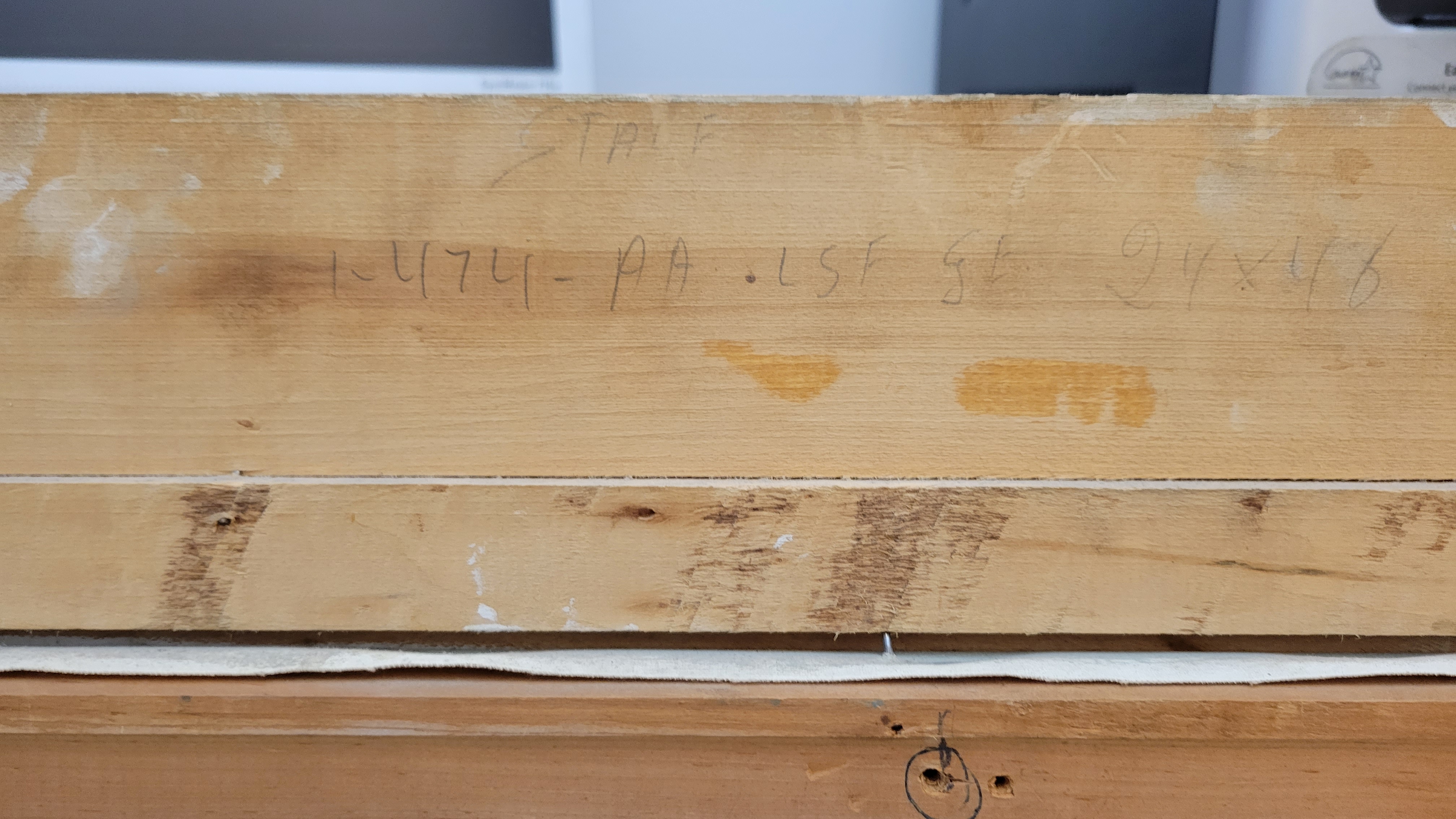 Framed in an antiqued gold / cream vintage frame which is hand scrolled / scalloped wood - frame size 55 1/4" x 31 1/4" x 4".