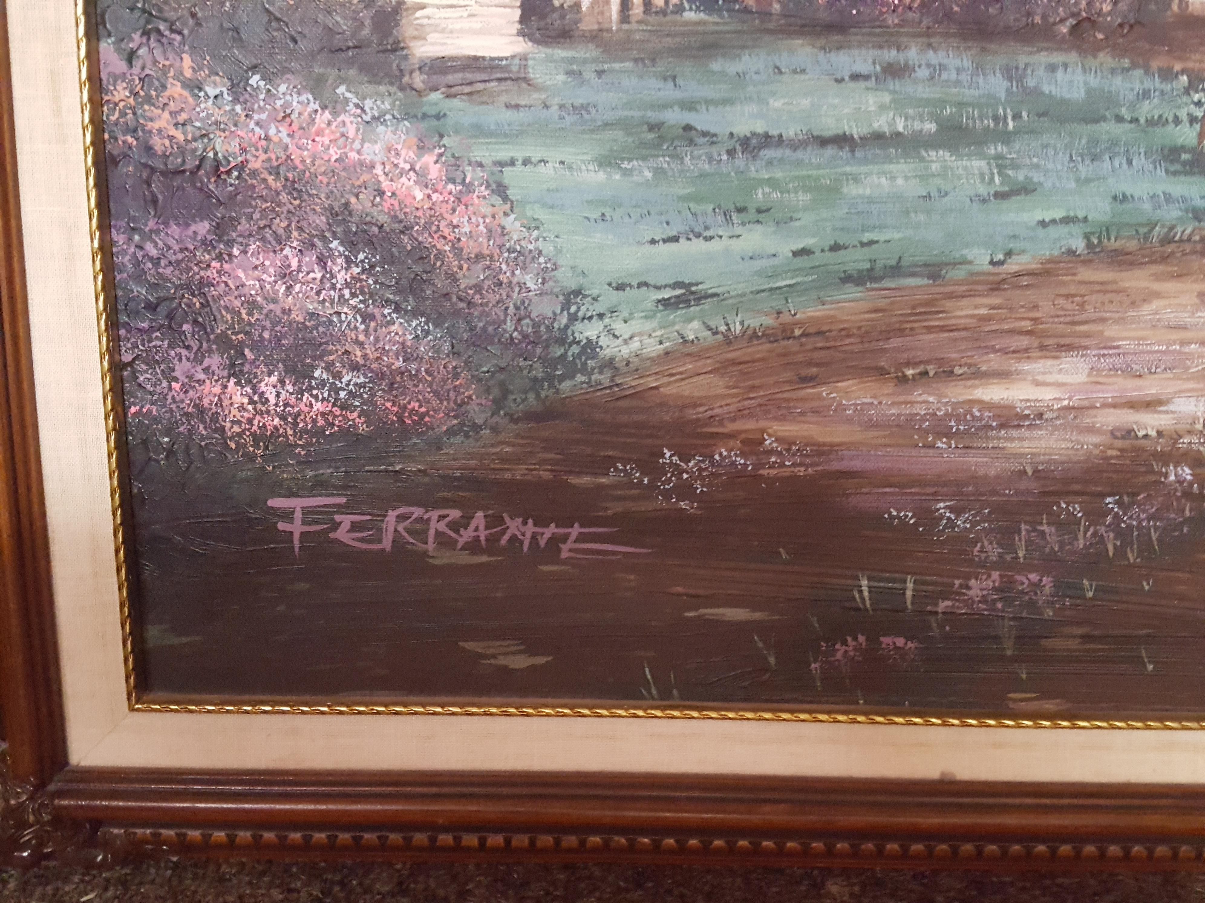 I bought this painting at an auction. It's a very pretty painting. It's approx 3' x 4' in size. It's signed Ferrante, but it's in color. Also, from what I've read, Ferrante painted abstract. Is this an Artmasters painting? Any idea if it is worth anything?