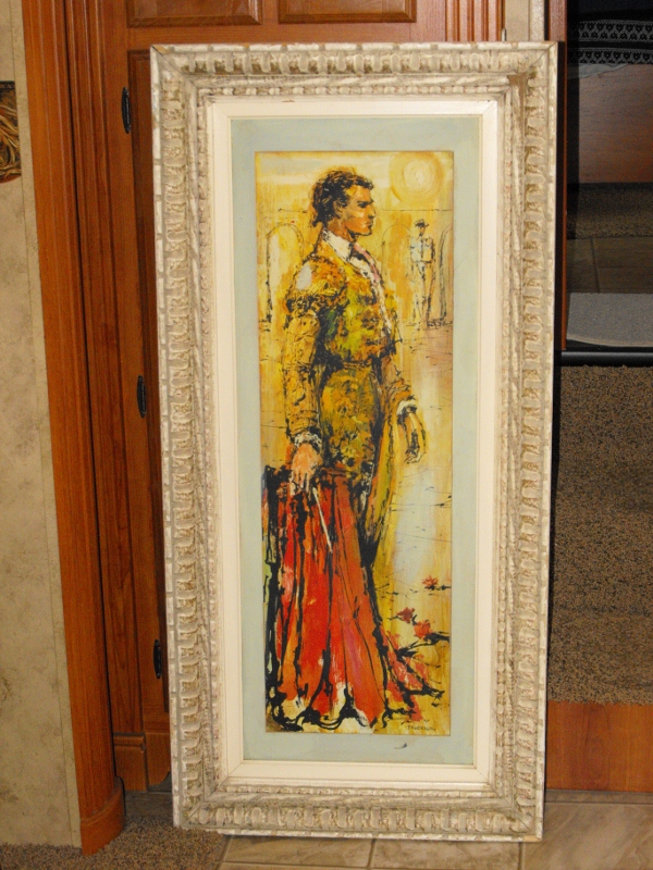 painting of matador-marked size 23 " by 48 " including frame--painting excellent condition --frame little rough