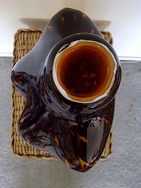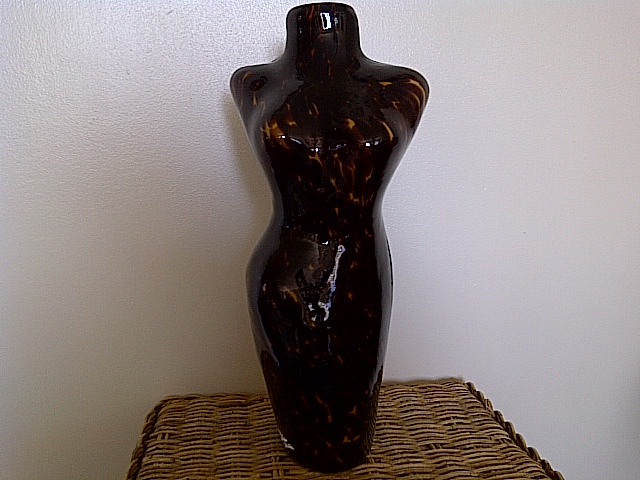I found this beautiful piece and kind find no information or anything like it. A 14 inch tall figural nude looks like Murano glass vase. All colors layers, white, yellow, gold, rootbeer color in a glass case so it is rahter heavy. A tortoise shell or Jaguar pattern you might say. The pictures will have to tell the story. THank you all for your help...I am stumped on this one!