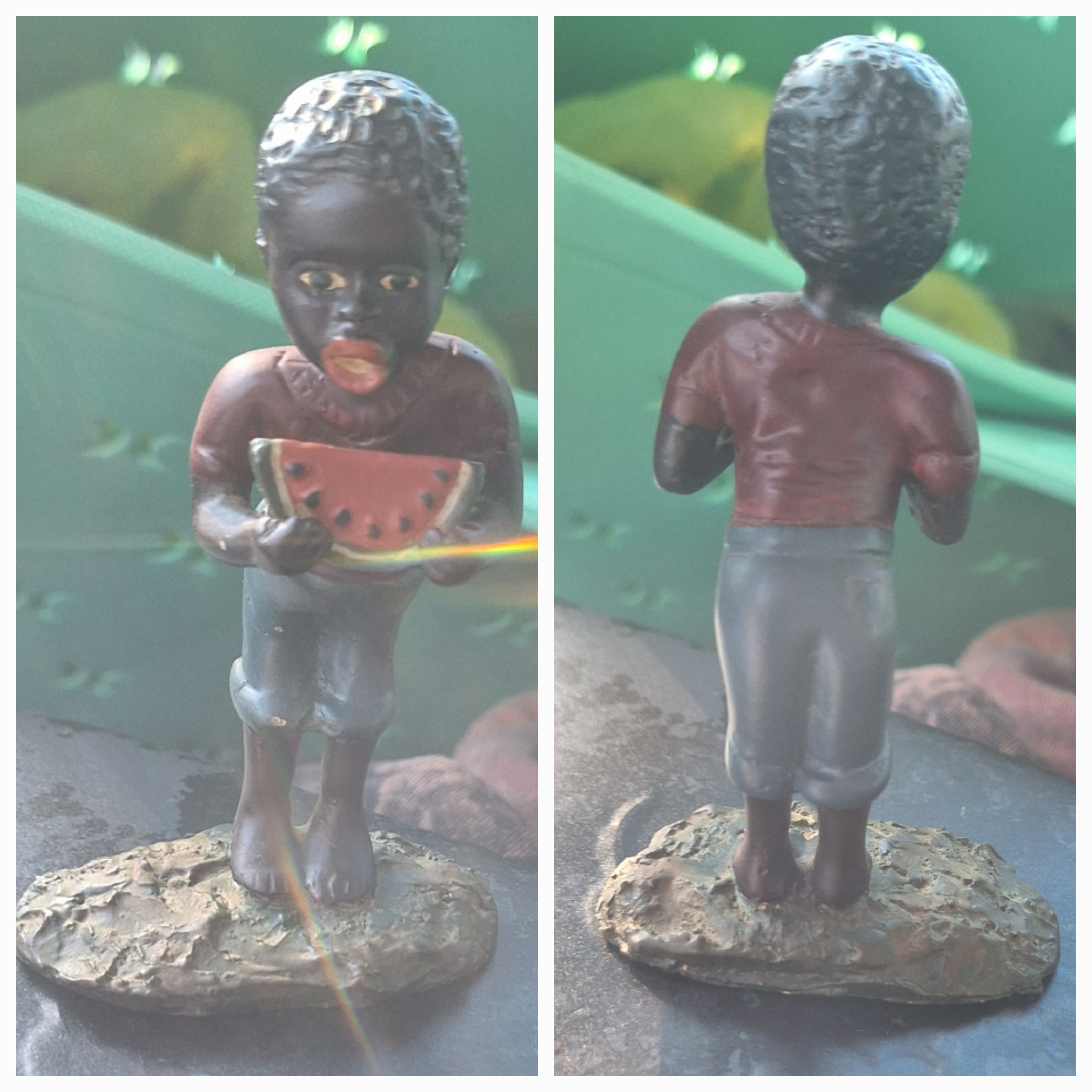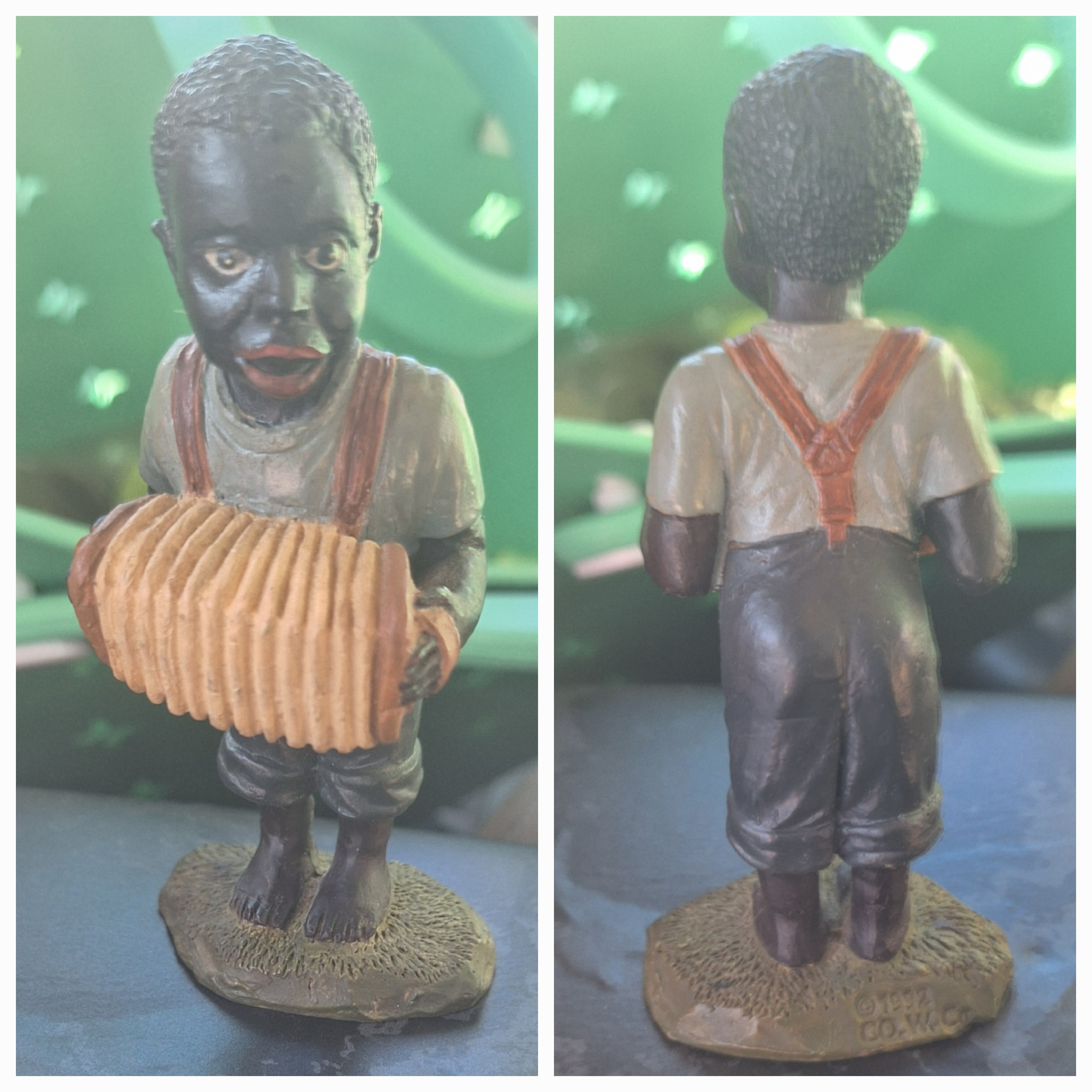 Black figurines only one has a makers mark but just says co 1992 the rest have nothing anywhere of them they arent cast iron or clay i dont know what they are made of