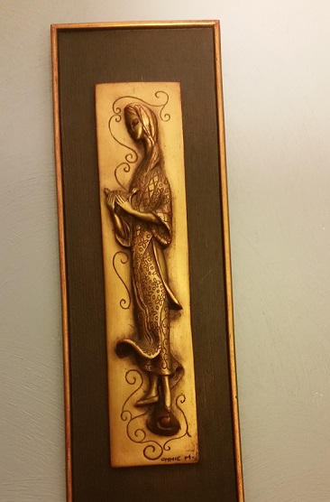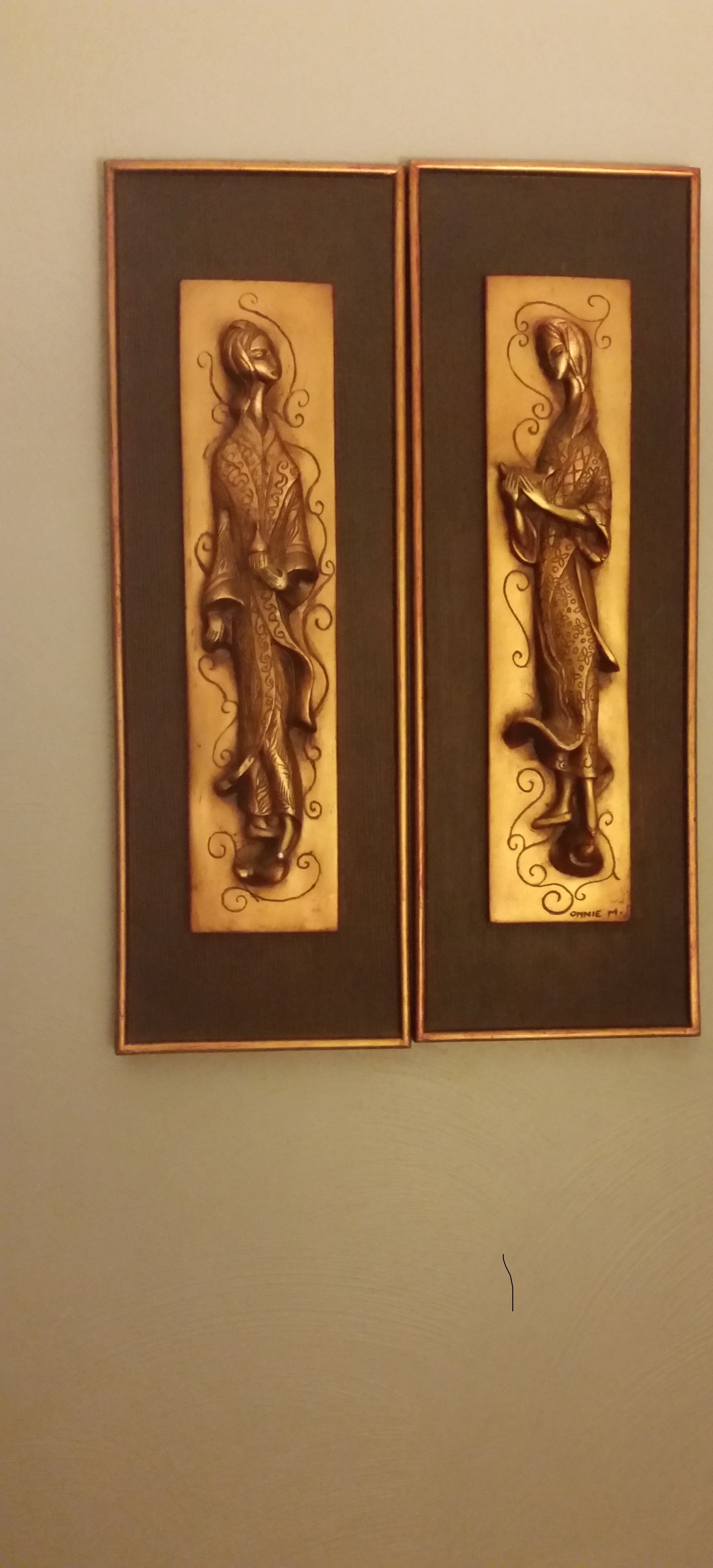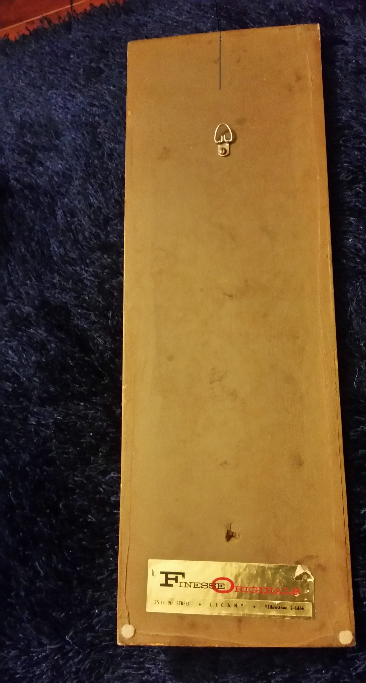 I found these paintings at an antique shop. I looked up the name on ebay and found art work by the same brand, but nothing identical. I would love to know what these particular paintings are .The paintings appear to be ladies. In one painting the lady is holding a jar, in the other painting a lady is holding an animal of some sort. there is a name engraved that reads: Onnie M. The back reads: Finesse Originals 35-11 L.I.C.6,N.Y. Yellowstone 2-4466
