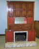 This is a faux fireplace that is approximately 4x6. We think it is made of cherry wood but are not positive. To turn on the fireplace you flip a switch on the back after plugging it in. It also has an 8-track player and record player in it. It was found in an old house in El Reno Oklahoma.