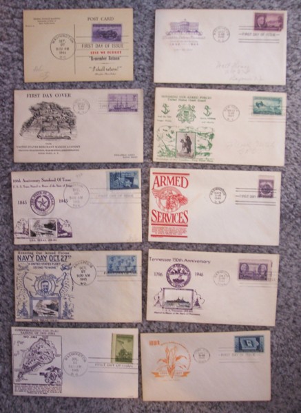 1940's: Remember Bataan; US Merchant Marine Academy; 100th Anniversary Texas Statehood; Navy Day; Iwo Jima; FDR; US Coast Guard; Armed Services; Tennessee 150th Anniversary; Iowa 100% Anniversary; Smithsonian Centennial; New Mexico Centennial; Edison Centennial; 100th Anniversay of the Postage Stamp; Mississippi Territory