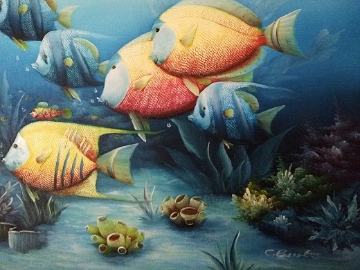 36 x 48 raised oil painting of tropical fish was appraised at $14,000.