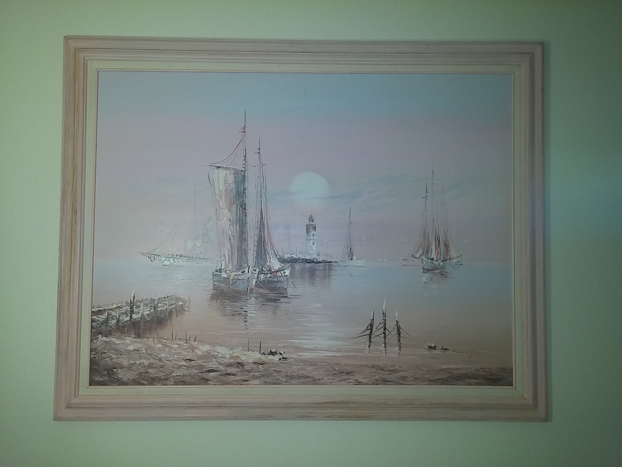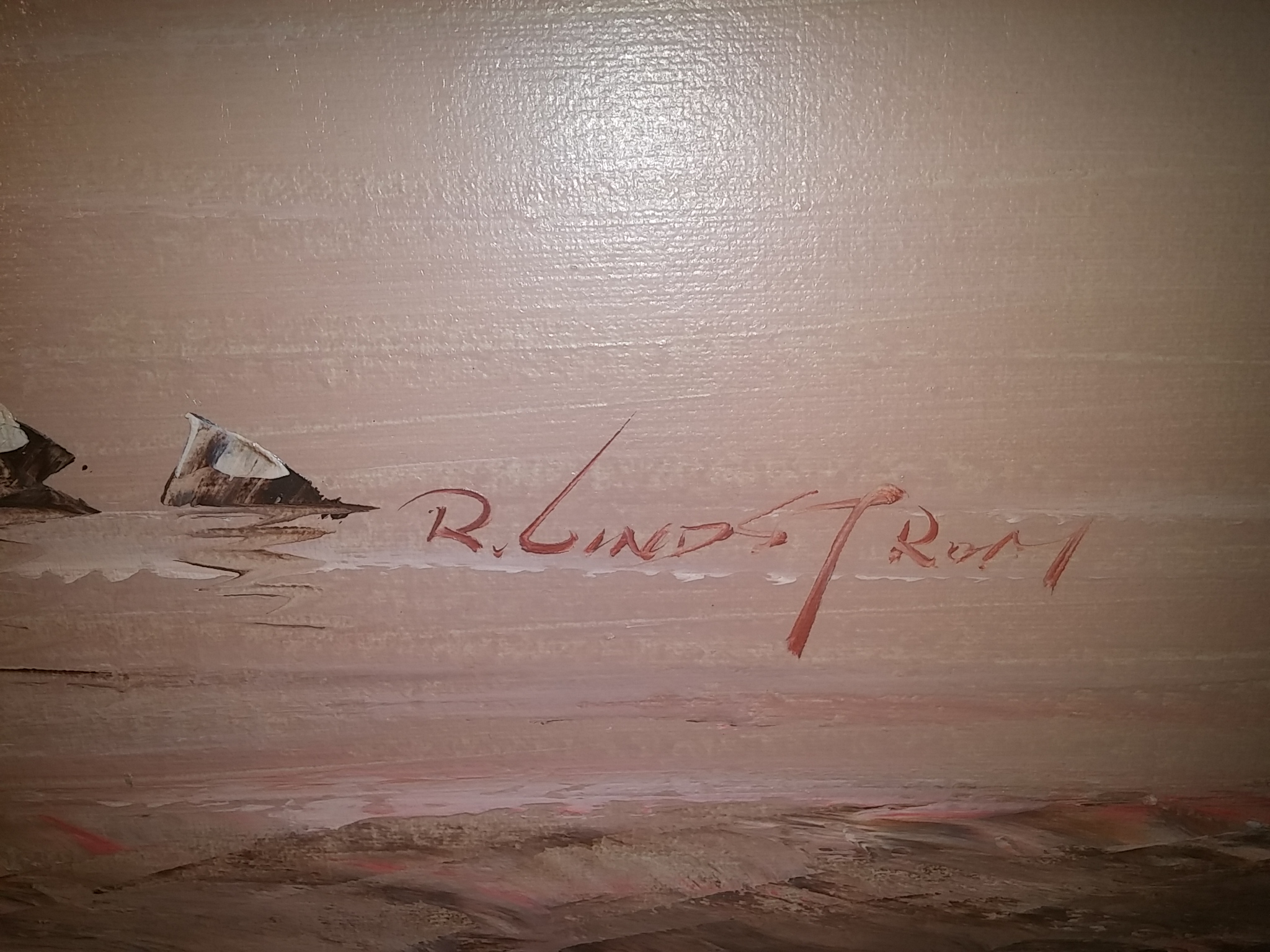 The frame is wooden pink frame an oil based. Paint by r lindstrum.. Inharited by family wanted to know what this will go for. 48×36 and signed by R. Lindstrum can anyone tell me what this painting is worth .