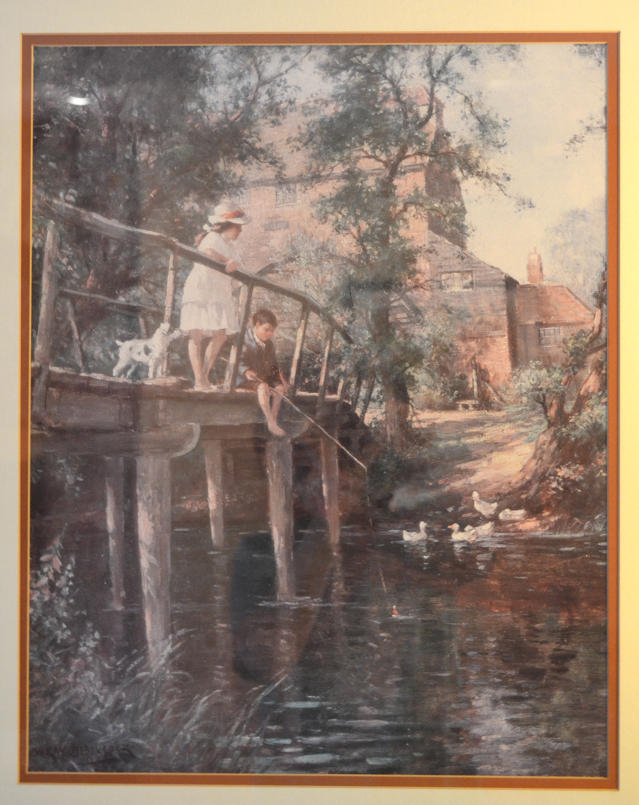 Framed FISHING FROM THE BRIDGE by William Kay Blacklock