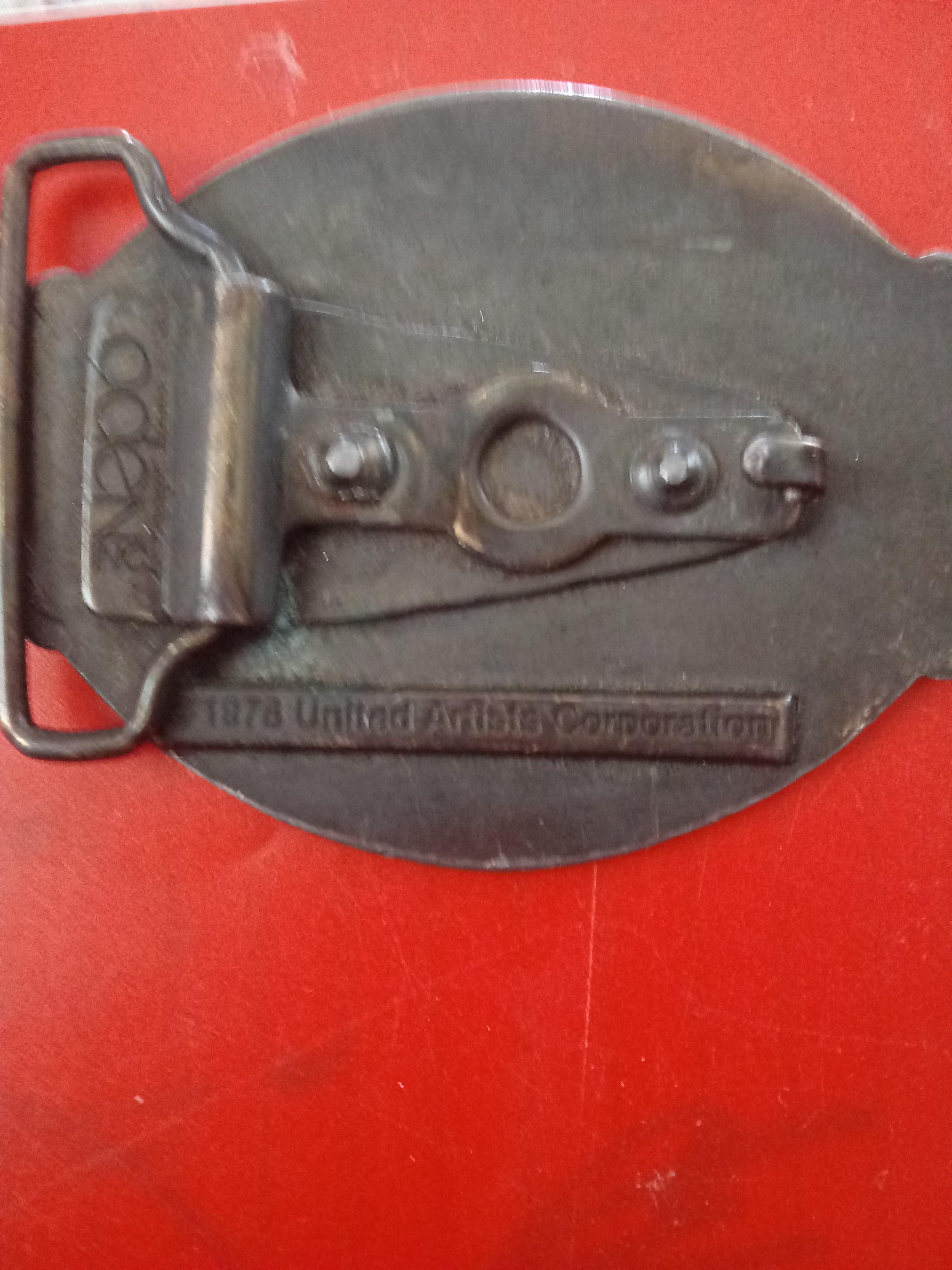 1978 sylvester Stallone f.i.s.t movie belt buckle on back it has the oden inc and 1978 united artists corporation
