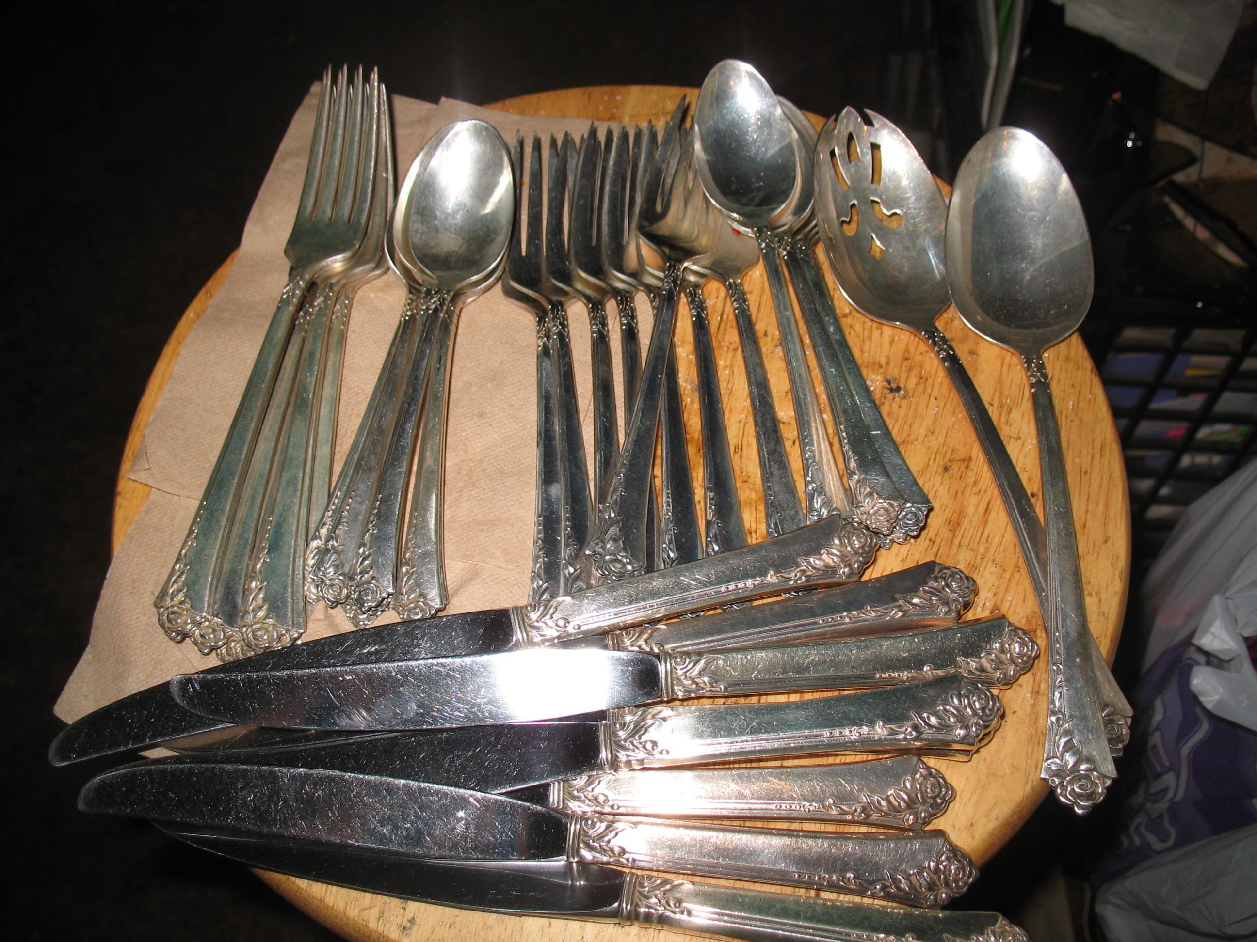 I have a set of Oneida Heirloom Sterling Damasc Rose Flatwarewith 8 each of Knives, Salad forks, dinner forks. 16 spoons, a serving spoon and a slotted serving spoon. Can you tell me aprox value?"