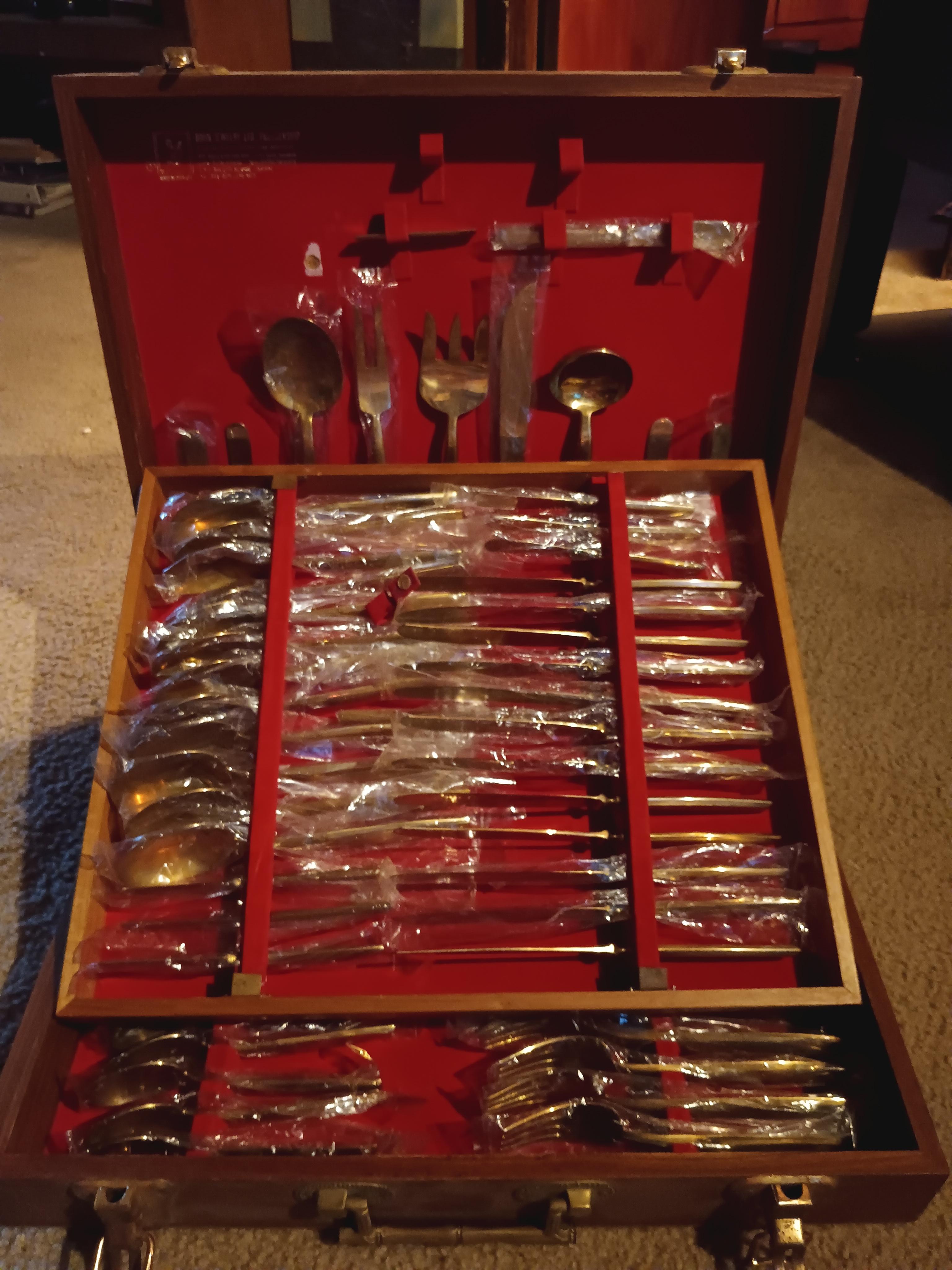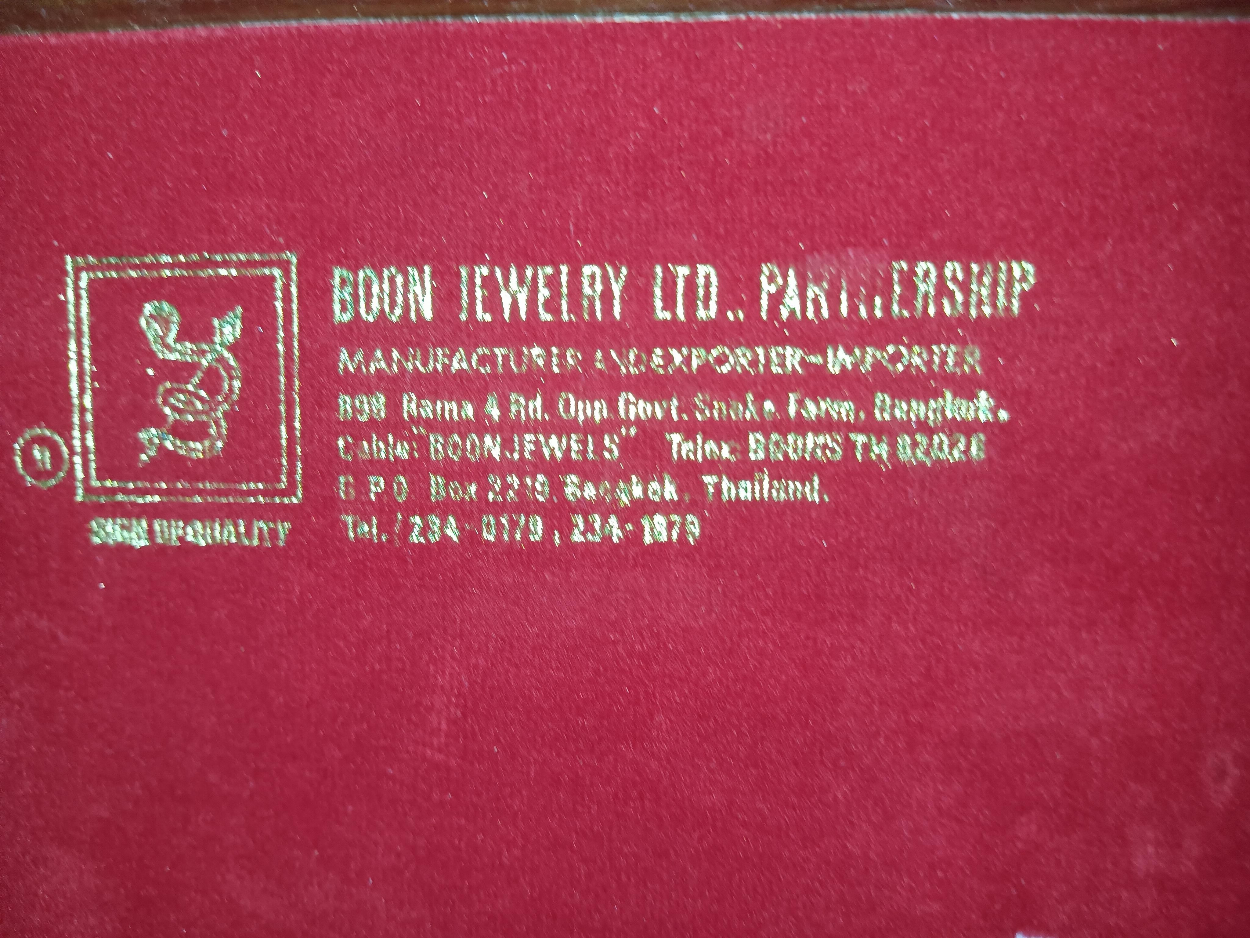 78 peices from Bangkok Thailand made by Boon Jewelry LTD Partnership. Last 2 pics I sent was a broken spoon. It doesn't stick to a magnet. I can't find this set nowhere. Can u help me find out the value please?