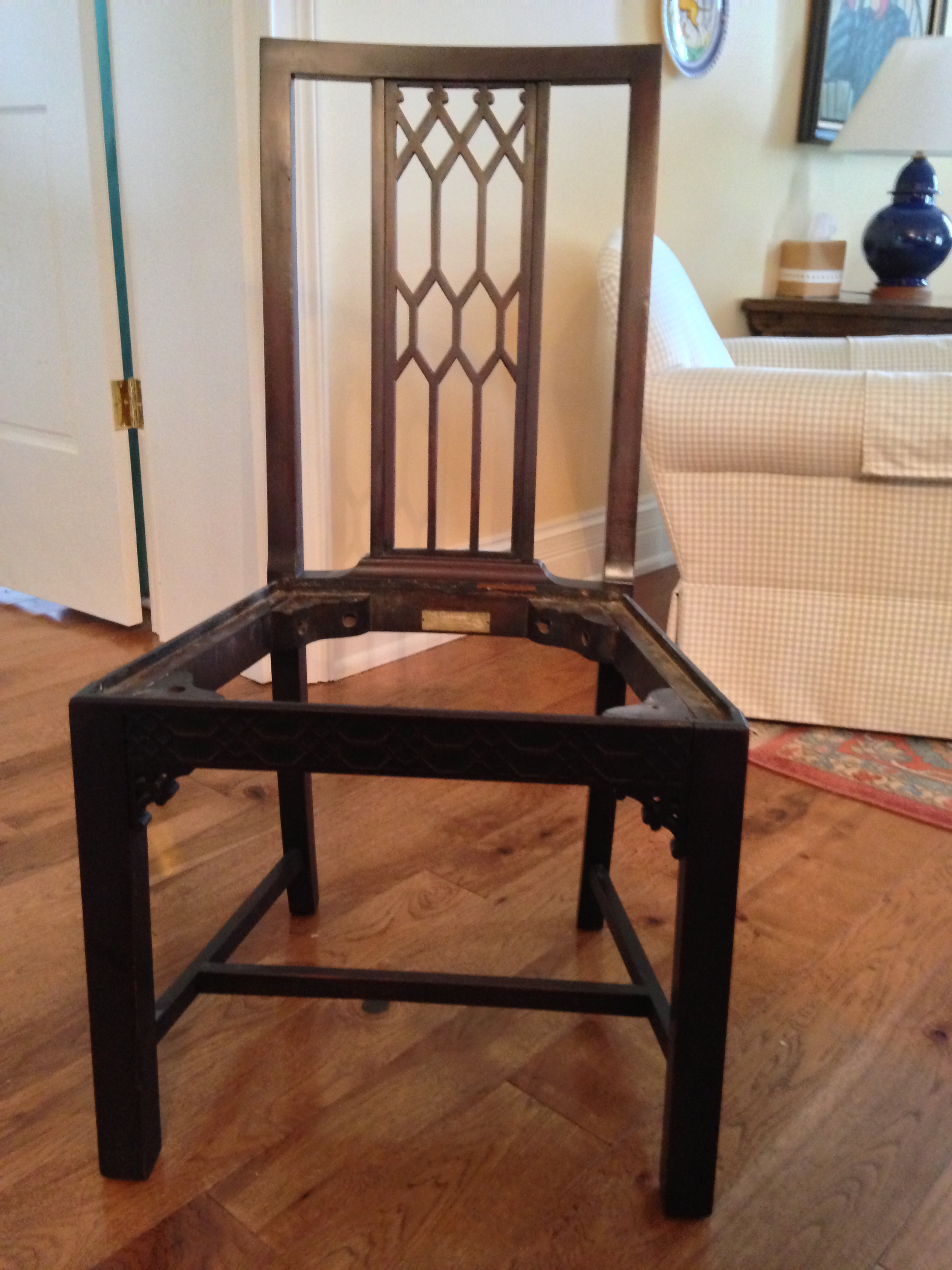 It's loosely based on the Chinese Chippendal style and dates from the early 20th century. George C. Flint was a mid-19th-century cabinetmaker whose business was acquired by Horner around the turn of the 20th century. Flint and Horner became a well known maker of early Depression-era furniture, but sometime later, it ceased manufacturing and became a broad-based retailer in New York. In good condtion we'd retail this chair for less than $135.00.