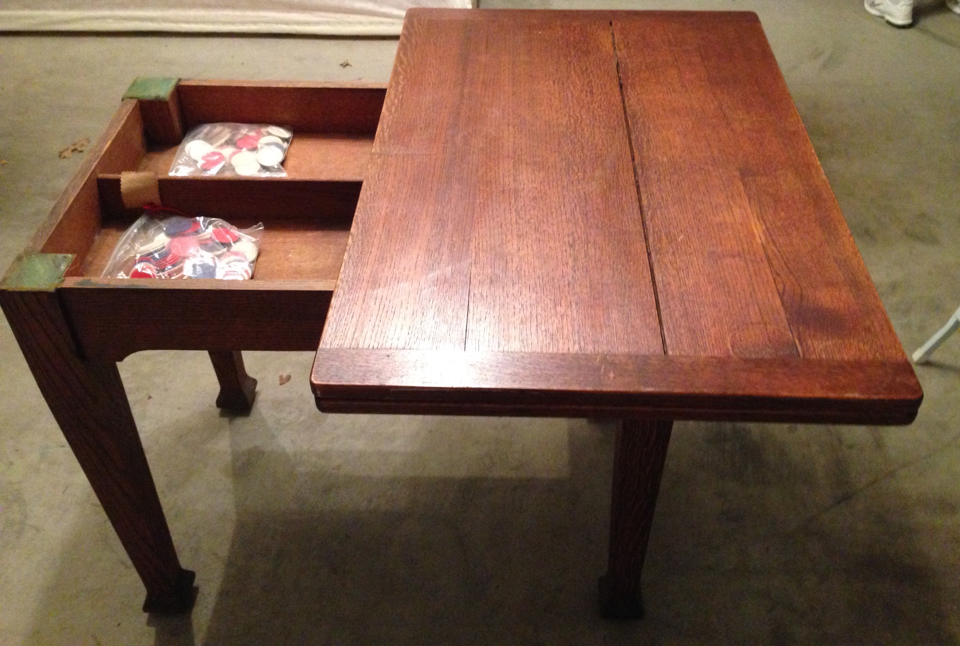 Trying to get history and value for this table. It flips open and rotates to make larger rectangle table. It has a storage space for game pieces.