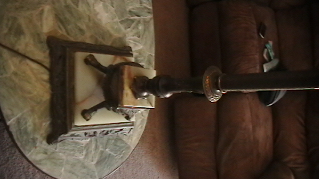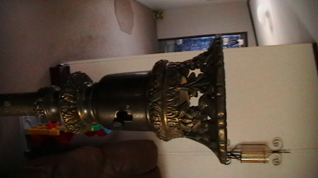 I have original square frosted glass shade and lamp works it uses a unusaul large bulb 250w looks like ur normal house bulb but uses a bigger socket and is taller same shape though the base has marble on it