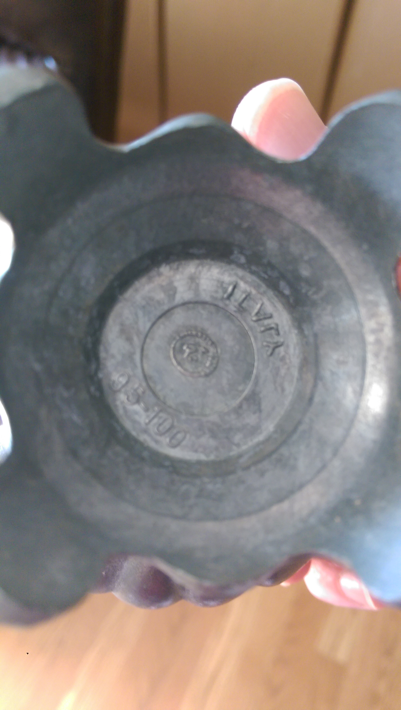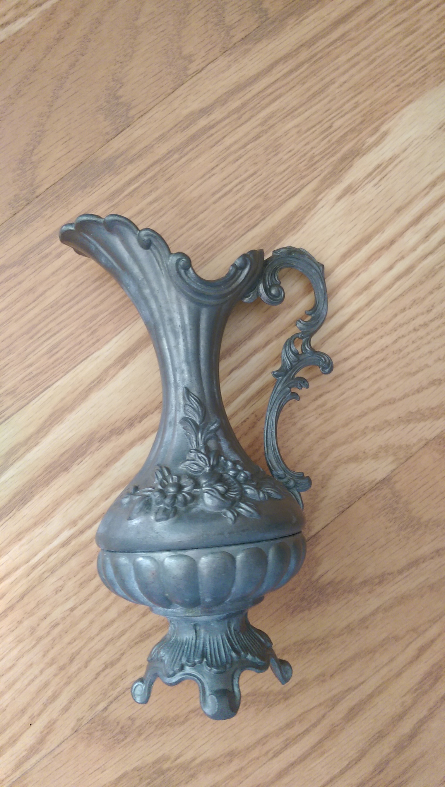 Metal floral vase, bottom inscribed Italy (backwards print) and 95-100 with a symbol.