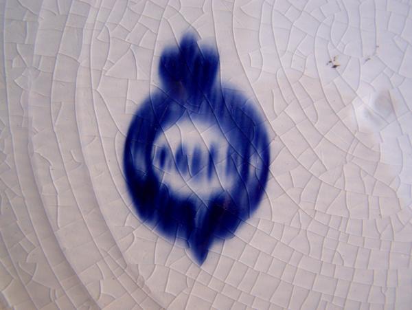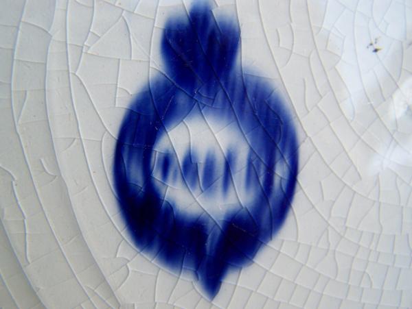 As some of you know I collect blue and white china of all dates and makers. The mark on this is so "flowed" I can not make it out. The crown on the circle made me think Worcester or Doulton but i have searched far and wide and i can not find anything similar.