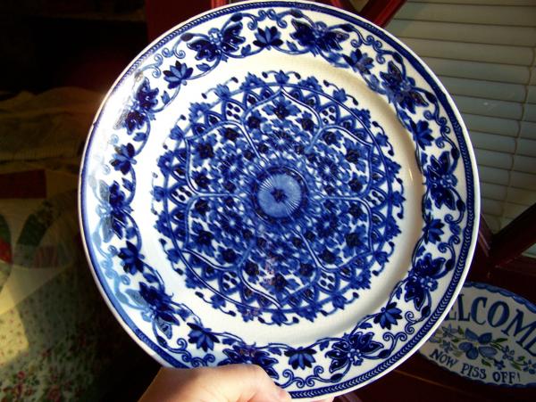 The pictures are very clear but look blurred due to the flow of the blue. There was gold on this plate at one time that I did not see until I took the photos and blew them up.