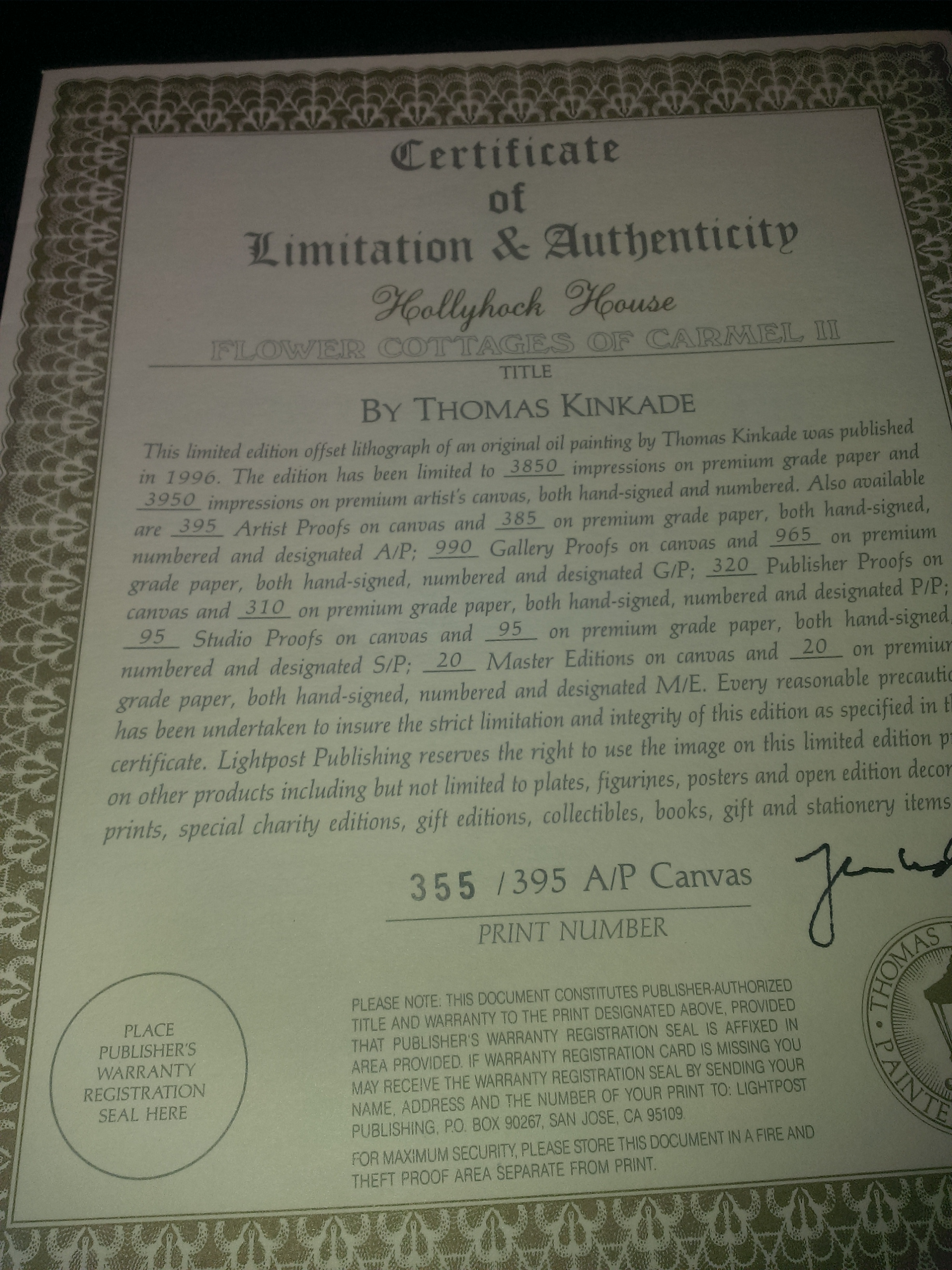 Thomas's Kinkaide Hollyhock House Flower Cottages Of Carmel II 355/395 A/P Canvas.