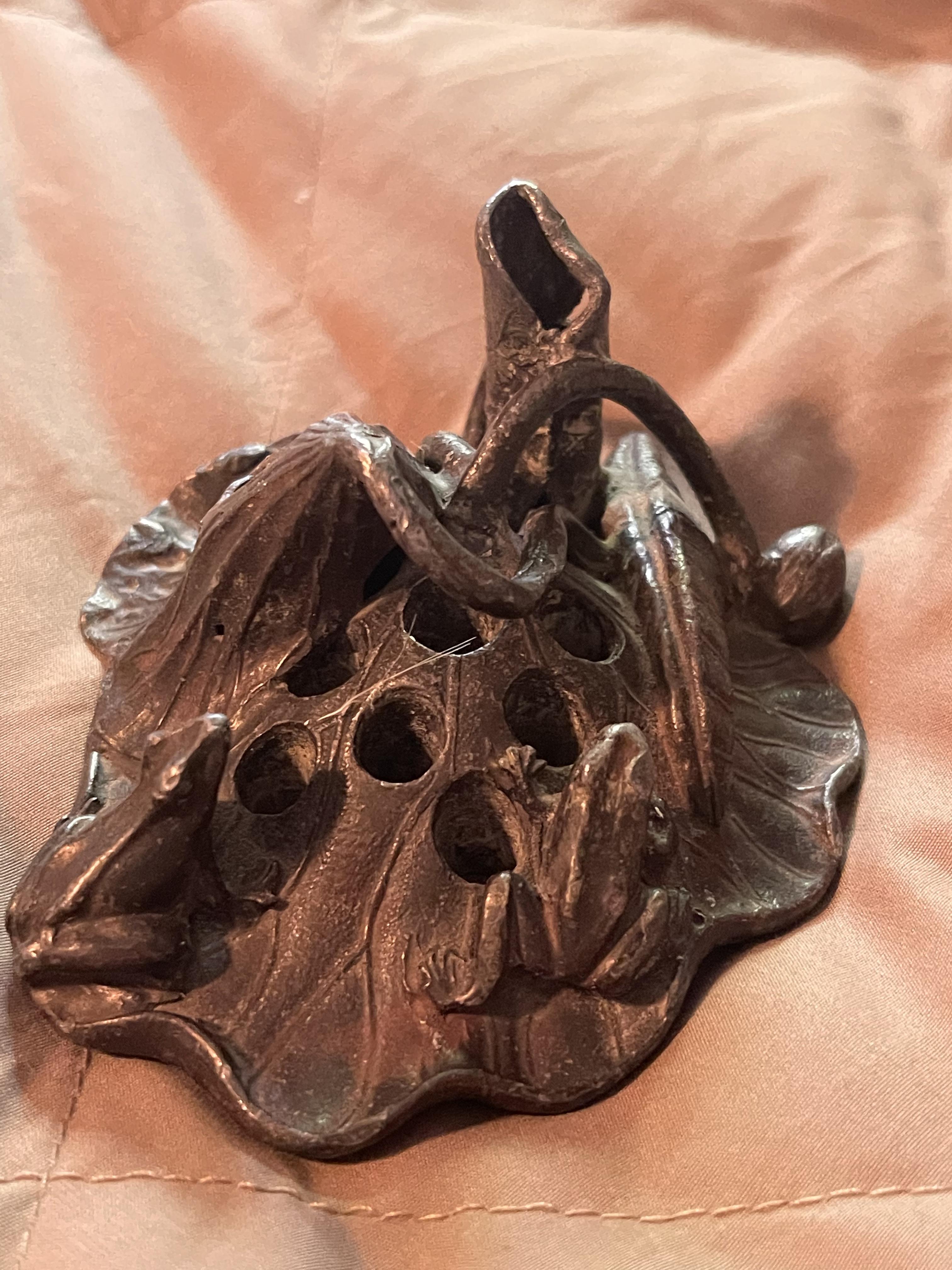 Bronze? flower Frog? Found in a free bin at a yard sale and curious to know more. Thanks so much!