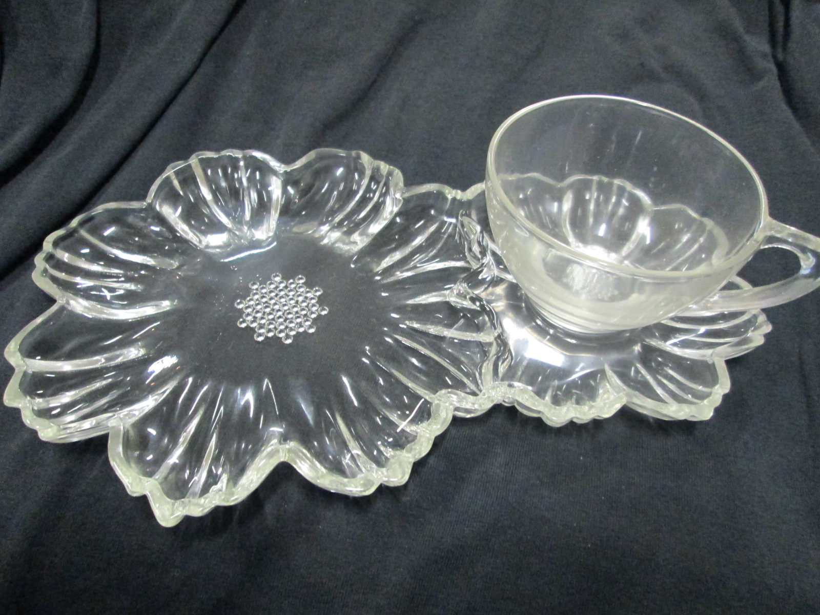 This is a glass cup and saucer combo that was retrieved from mother's home located in Southeastern Wisconsin. We would like to know what the brand of this item is and any additional info about the item. We have done our own research and have not found anything even close to what is here. Overall, we would also like to know what the value of this item is.