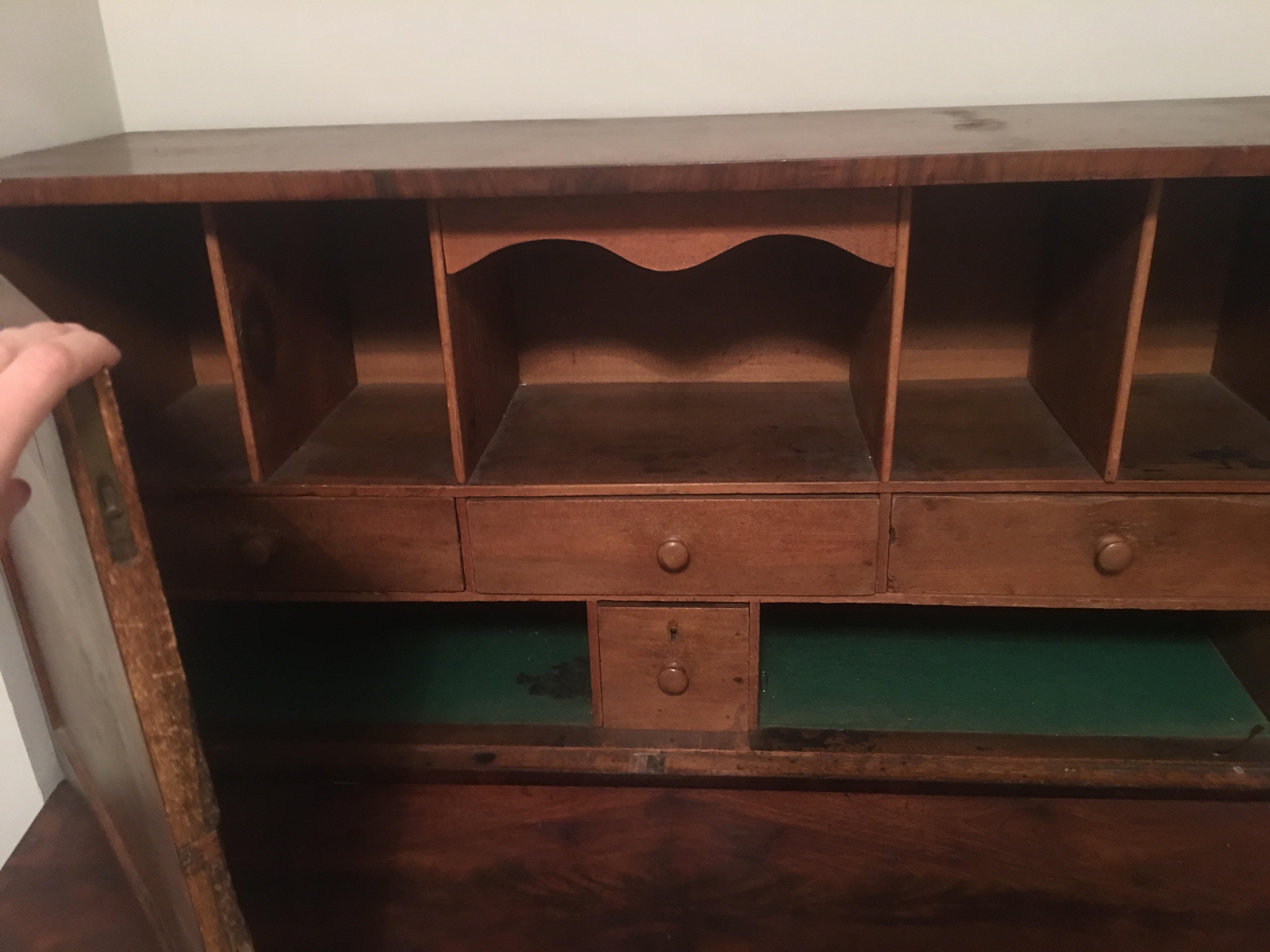 this desk belonged to my grandmother I don't know much about it. I was unsure about the type of wood. Also does this type of desk have a more specific term?