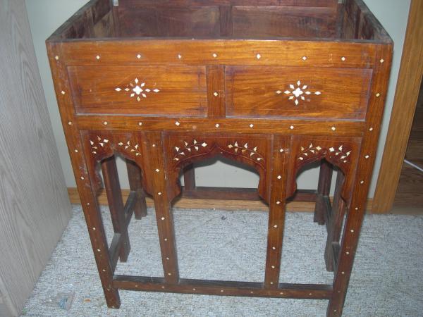 inlayed designs, folds up, no top on it