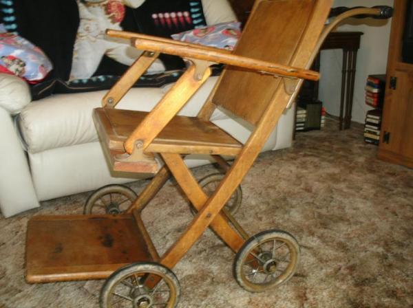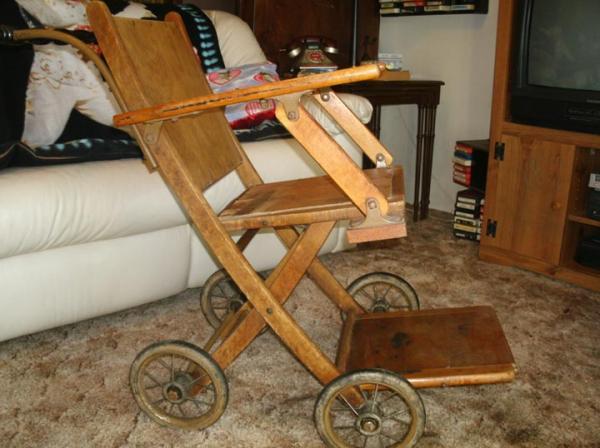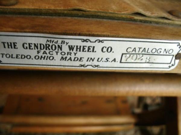 Folding wheel chair manufactured by Gendron Wheel Co, Toledo, Ohio. Catalog # 702b