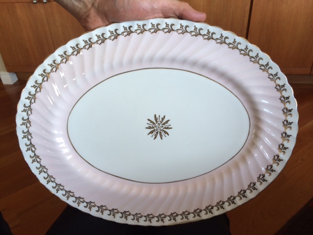 this is an EB 1850 Foley bone china platter, i think, or sandwhich tray ?? .... from the mark it seems like it's Wileman, 1949-1963. However, I cannot figure out what pattern it is and can't ascertain a value.