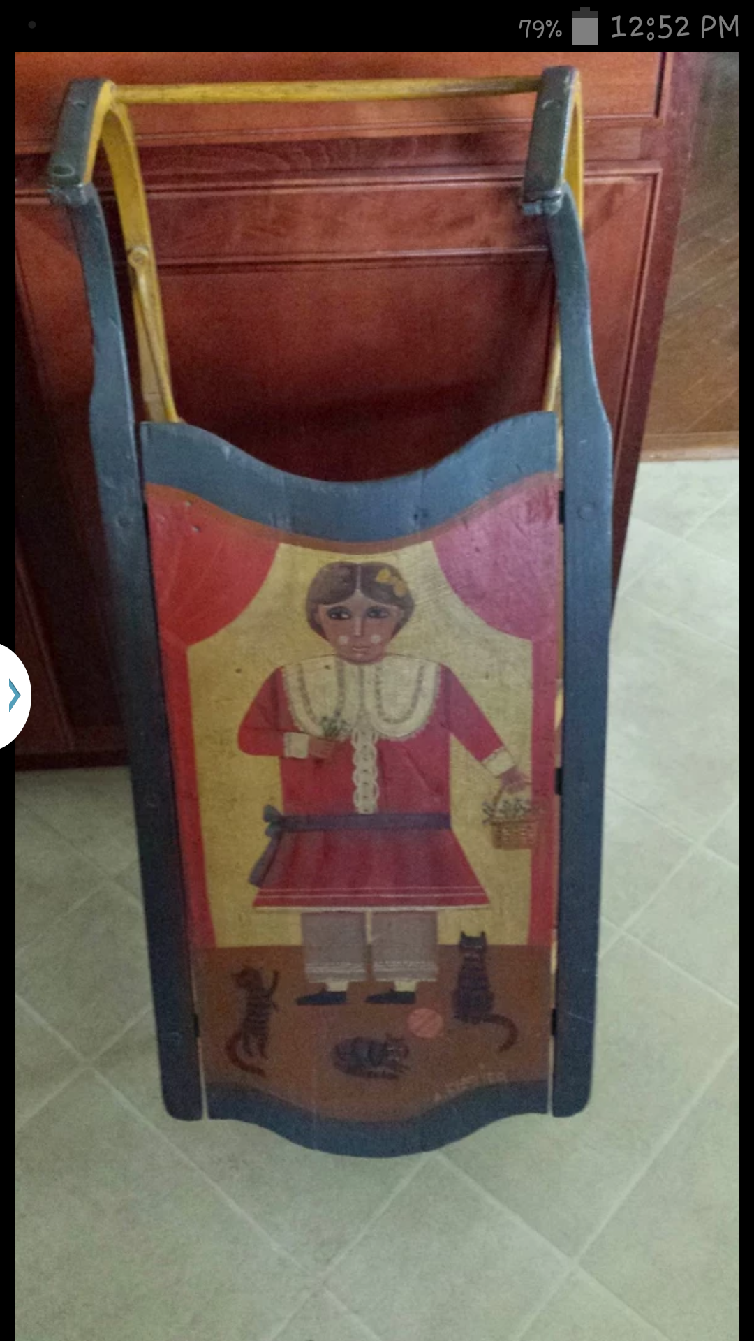 Folk art painted sled in good condition A Glazier marking on bottom right.