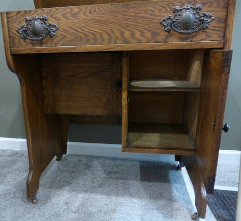 Here's a furniture ad for your piece on an envelope from 1898, calling it "No. 348 Desk Washstand" http://www.ebay.co.uk/itm/Furniture-Ad-Cover-Forest-City-Furniture-Co-DESKS-Rockford-IL-1898-S6474-/321305702753