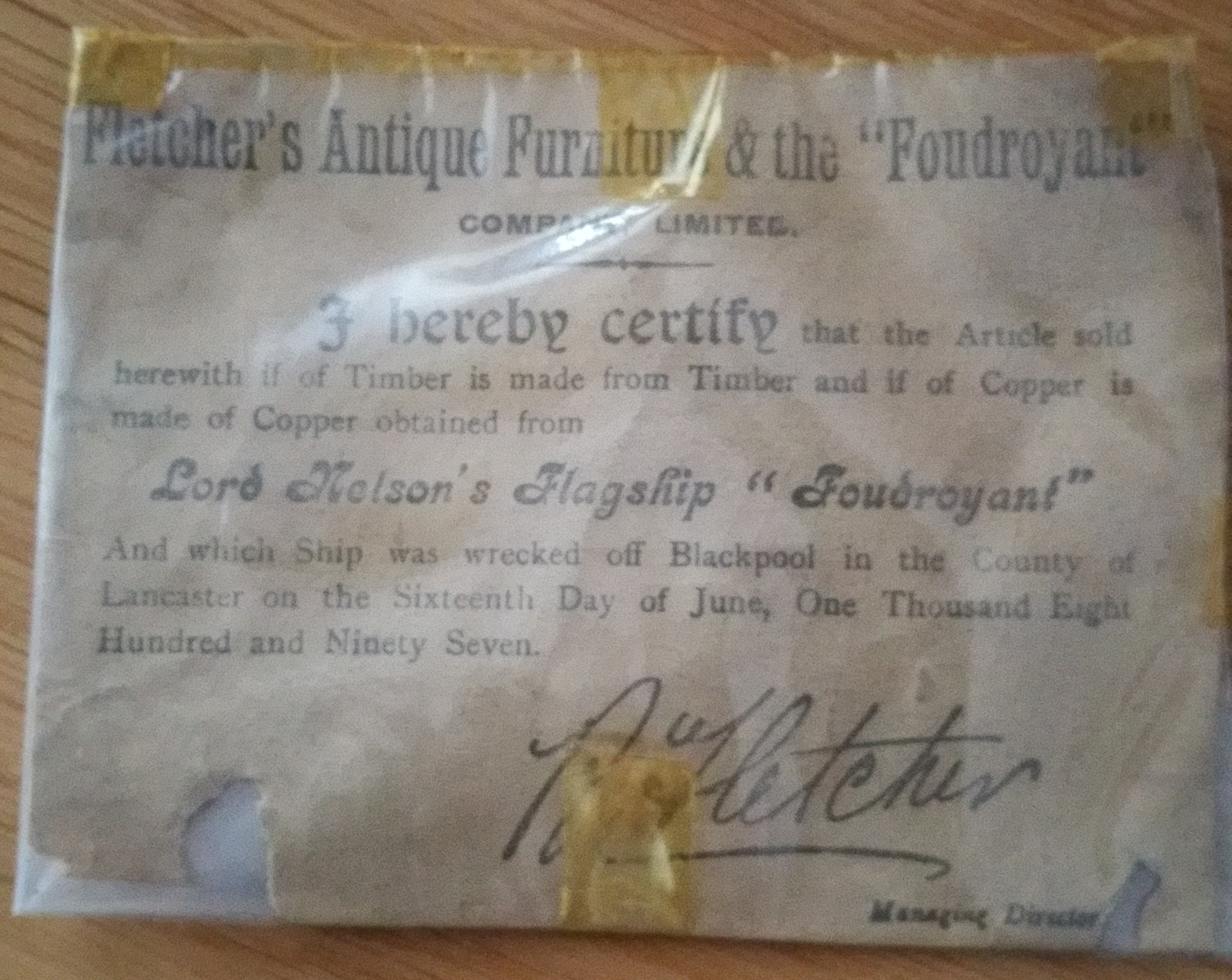 Fletcher's Antique Furniture & the "Foudroyant" comapny limited