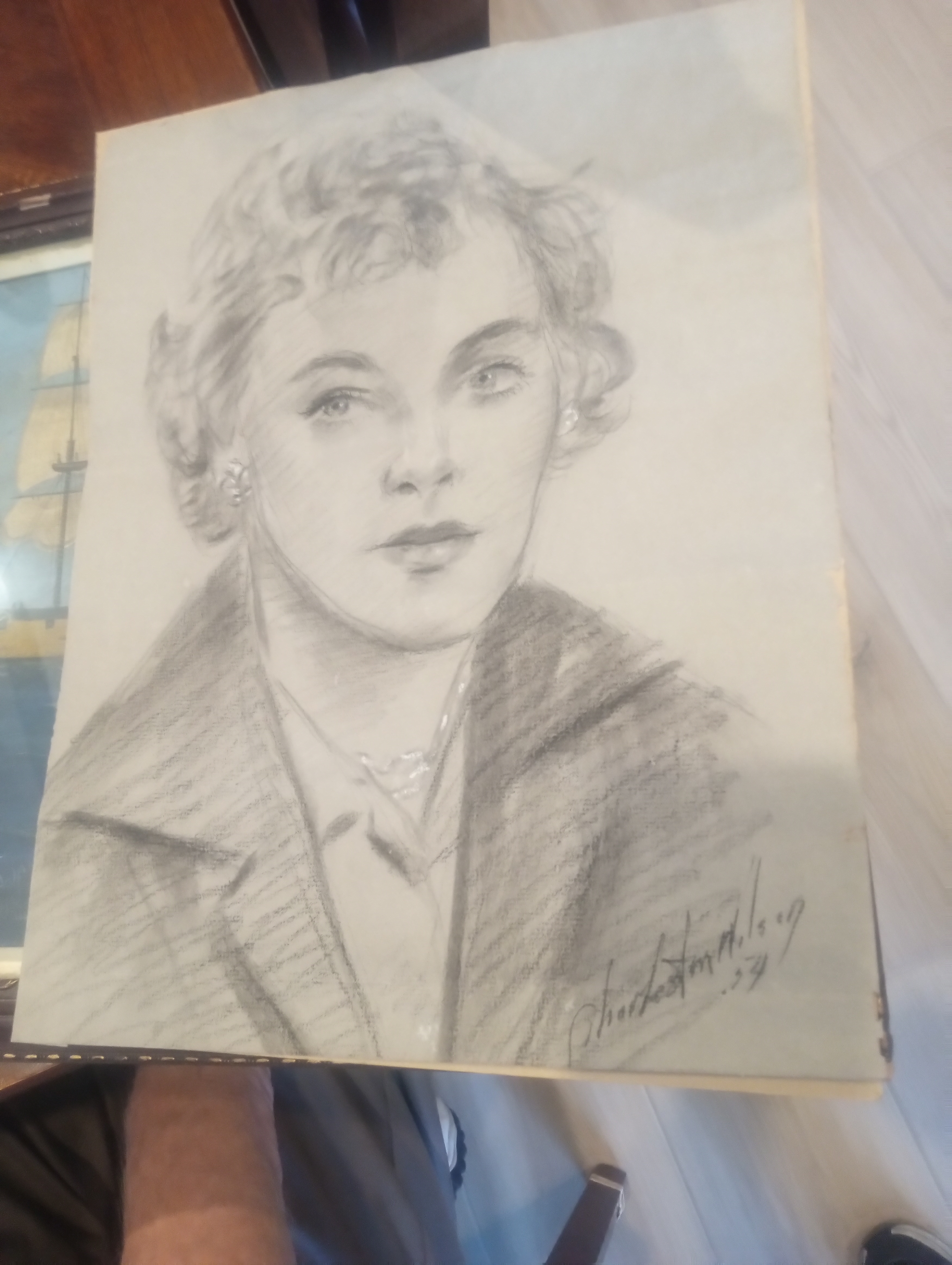 Original Portrait Sketch Signed "Charleston Wilson," 1954