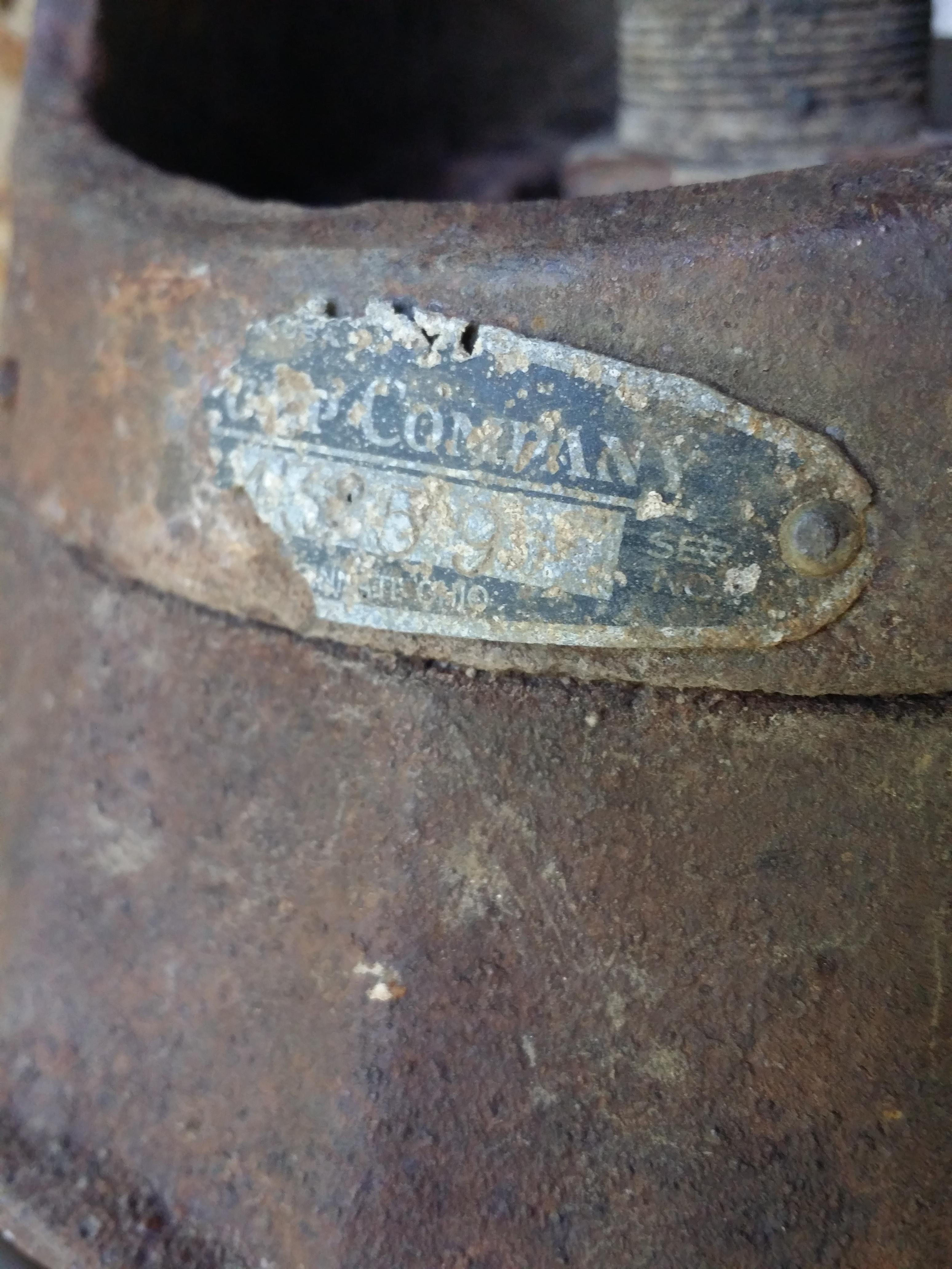 Found two pieces of what is believed to be a pump and/or gas lamp. Has a badge that I believe says pump company made in Cincinnati Ohio. Also has a serial number on one of the pieces.
