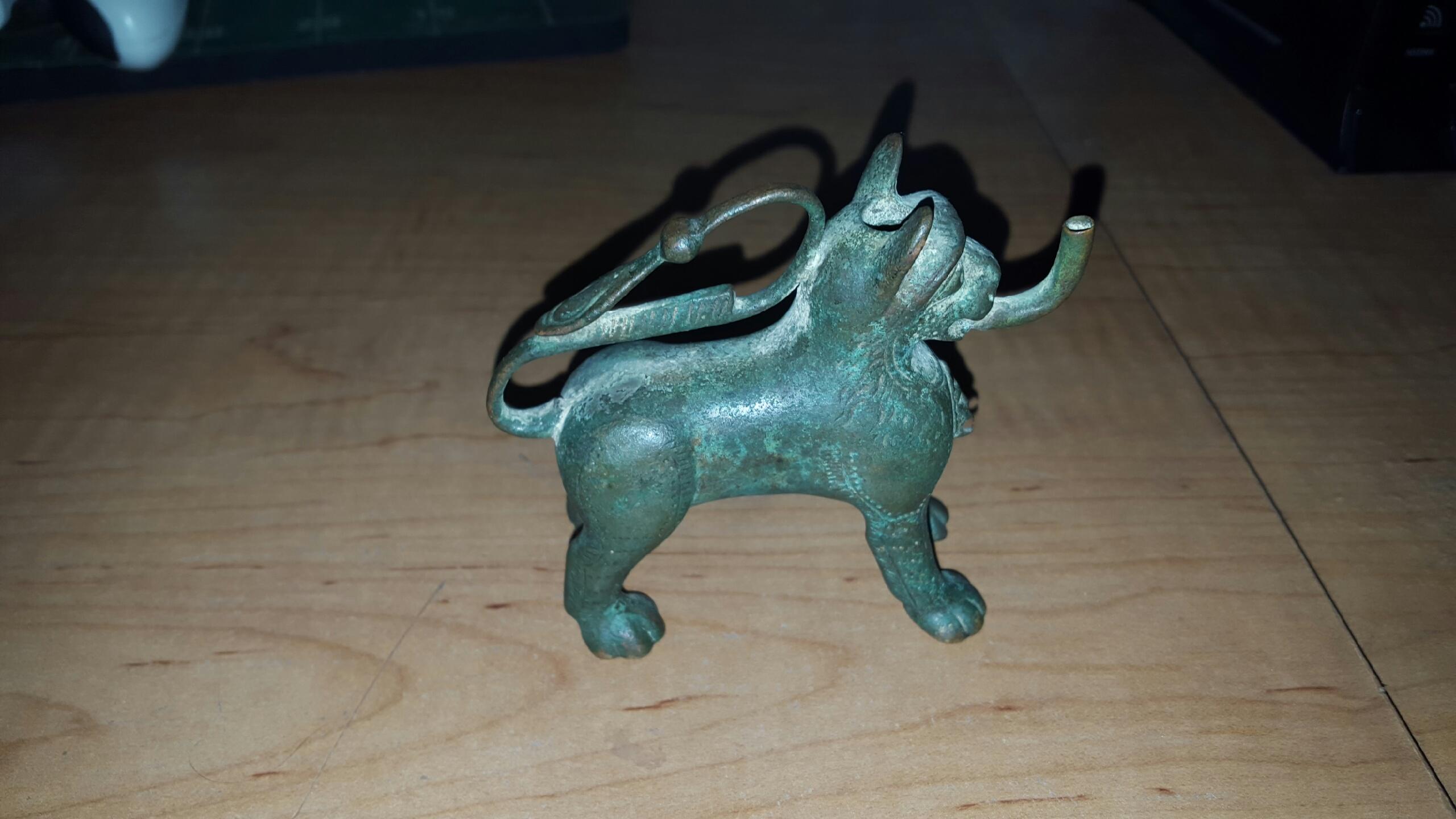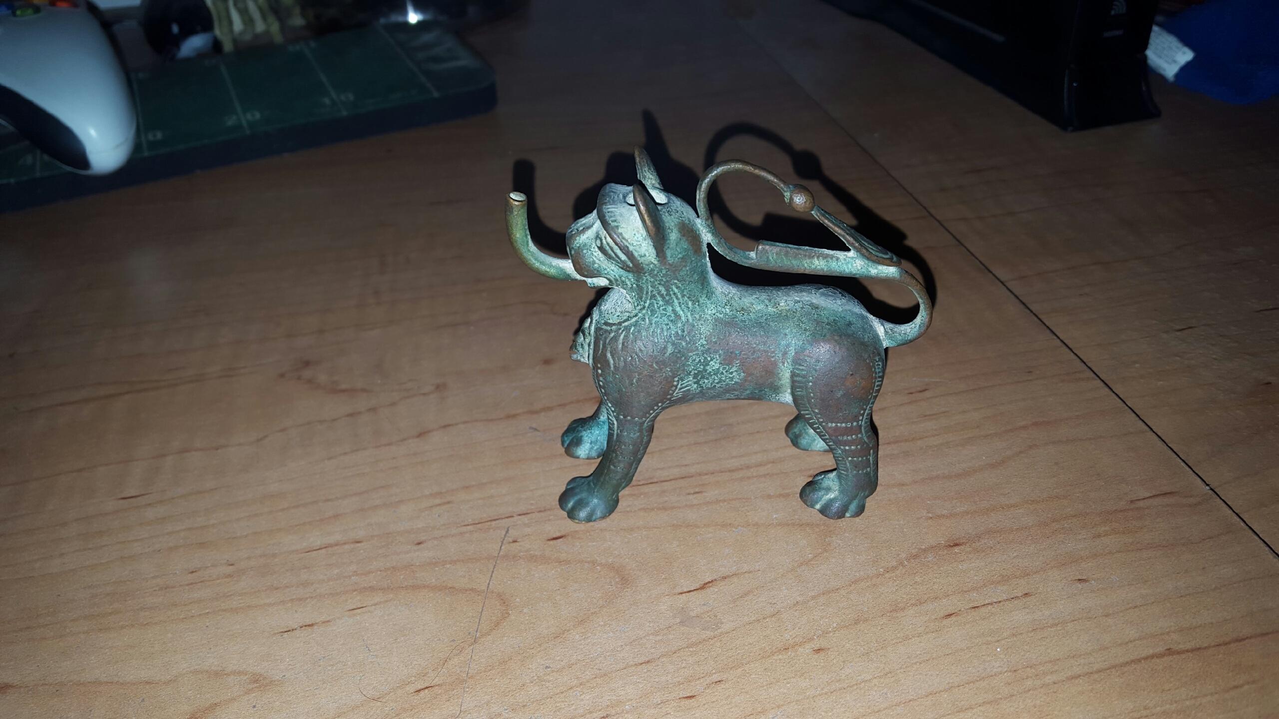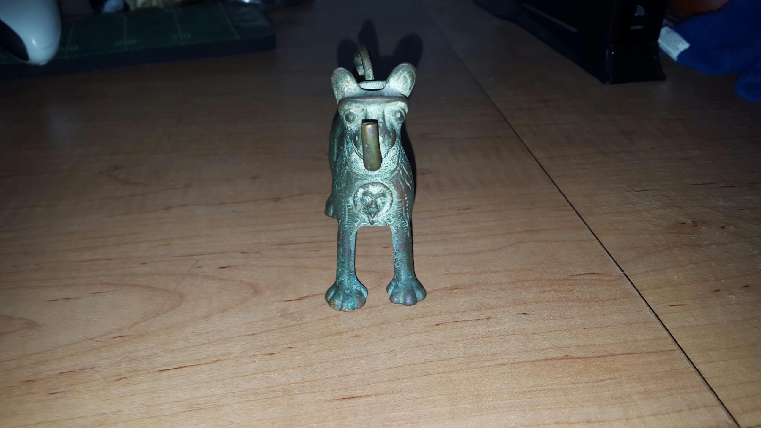 Ive been doing some research and I found out a few things. I found out its called an Aquamanile and I think its from 1800s Europe (I think Germany). I dont know how it got to St. Thomas or if its even worth anything.