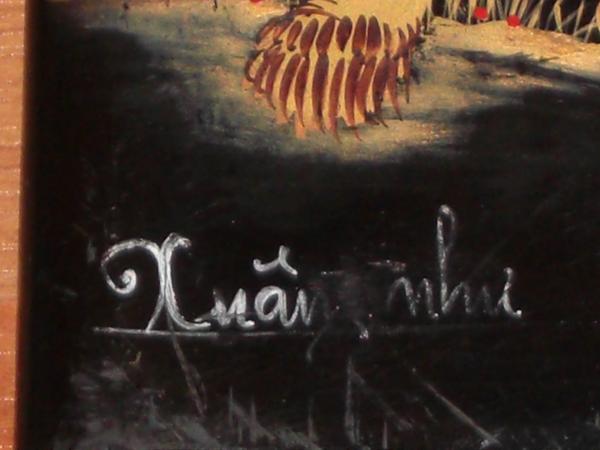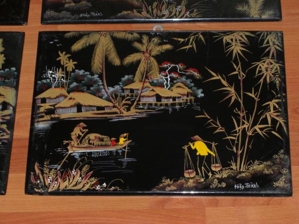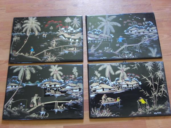possible vietnamese paintings of the four seasons? black; lacquered?