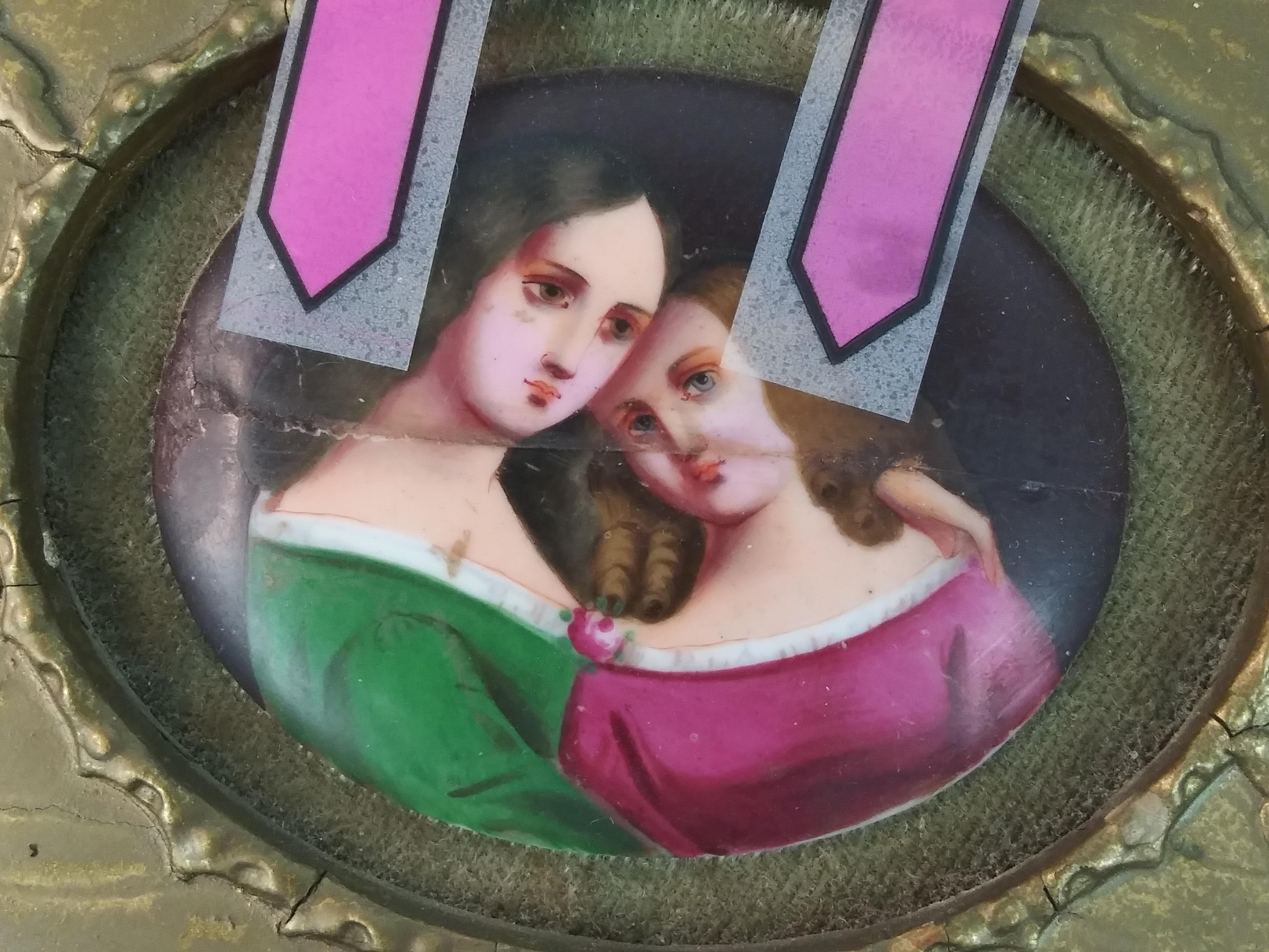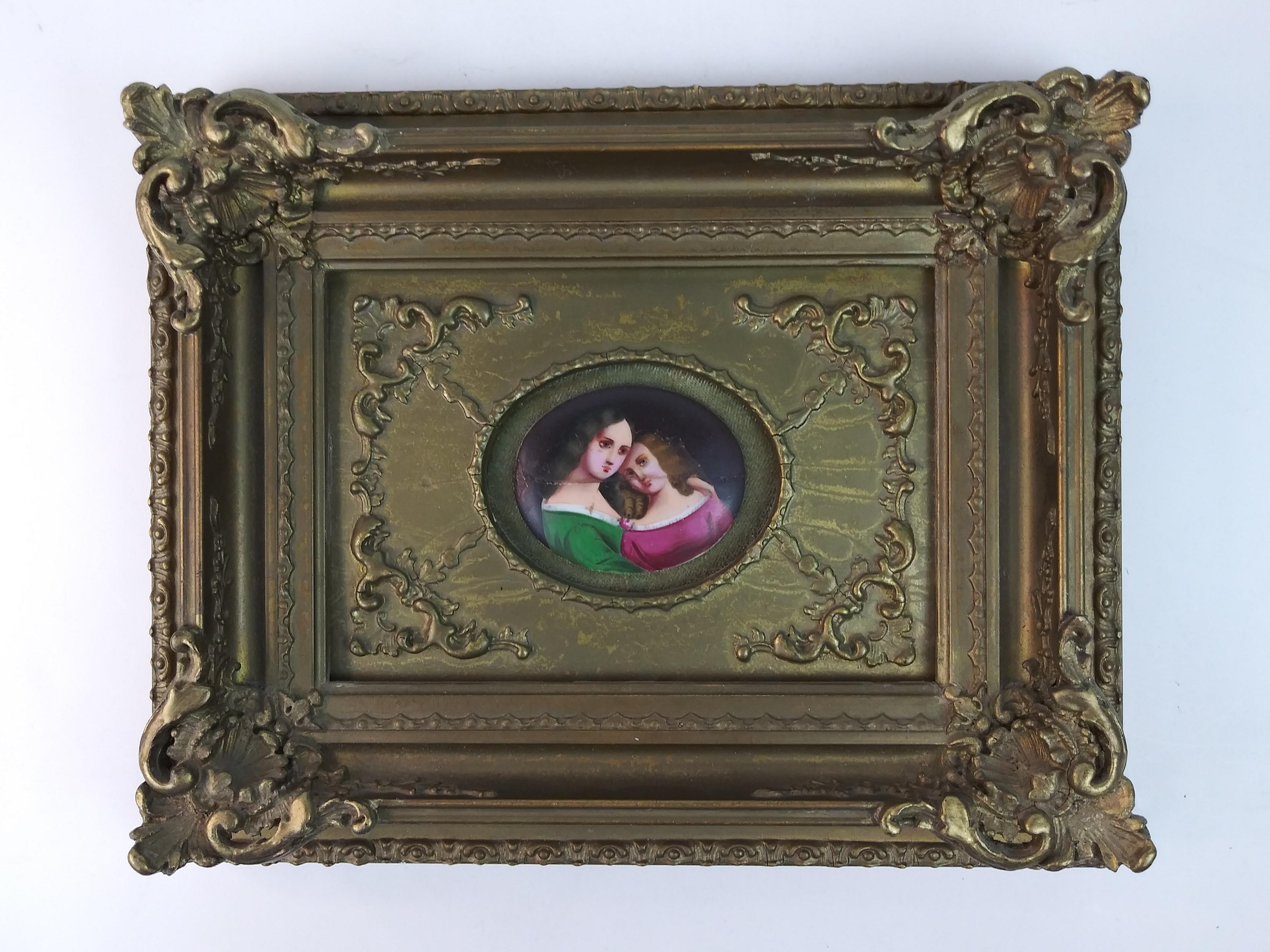 I am not sure if this is hand painted on porcelain. Notice that it is cracked horizontally in the middle.