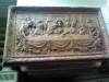 This silver relief Last Supper artwork has a black frame. It was given to my grandparents on their 25th Anniversay in 1955. I do not currently have the physical item only photographs. I have not been able to find any markings or artist signature. It is aproximately 14" X 10". It has not tarnished over the years which tells me it is not silver but rather, pewter, silver plate or ?