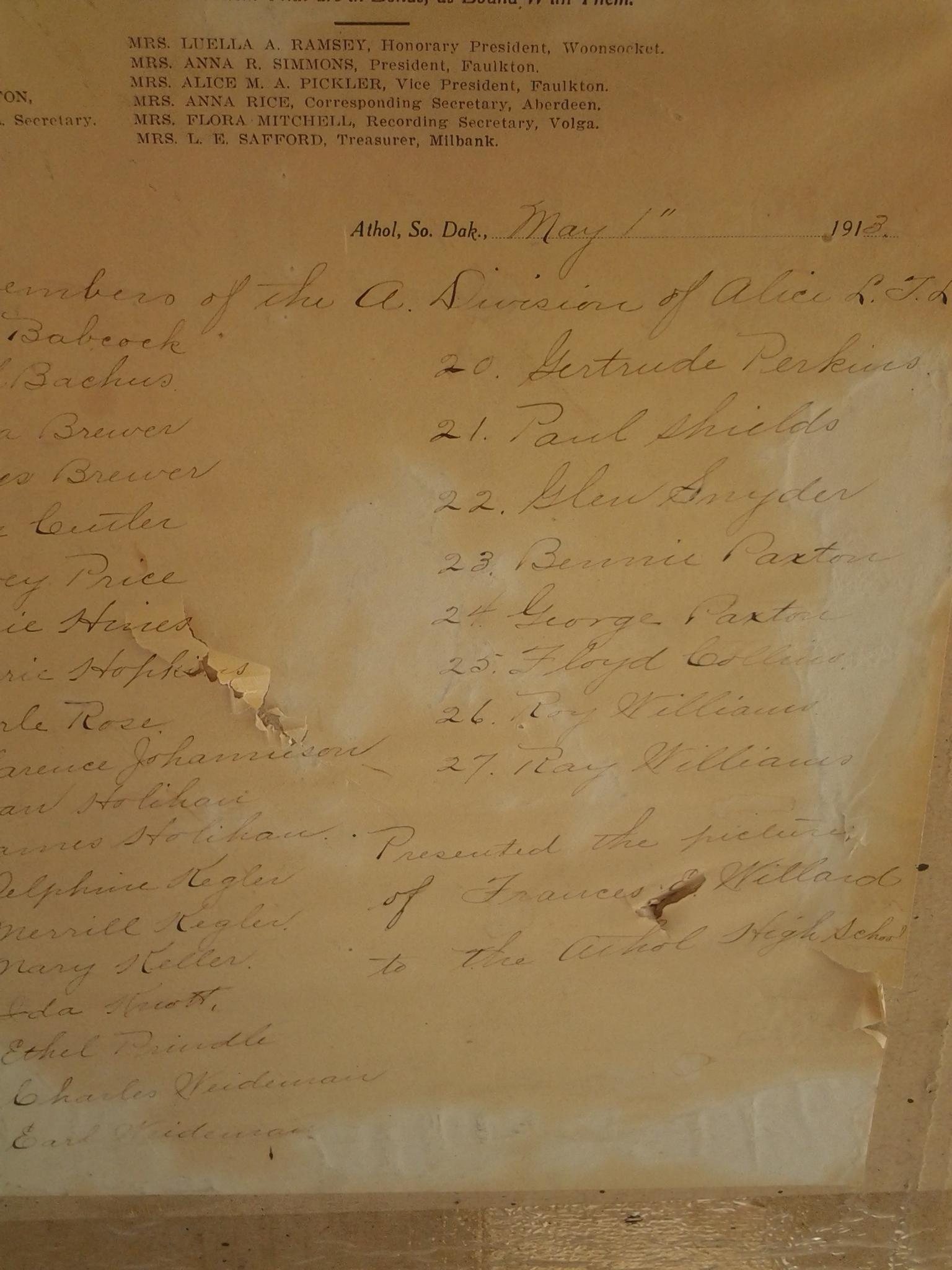 It  is original. This is a group of people who were in a Union "SOUTH DAKOTA WOMENS CHRISTIANS TEMPERANCE UNION. It was signed and dated for May 1913. I do know that Frances was someone listed in our history.