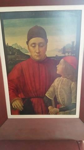 - This dynastic portrait shows the Florentine banker Francesco Sassetti (1421–1490) and his young son Teodoro, who was born in 1479. He was named after his elder brother, who died that same year. Sassetti managed the Medici banks in Avignon, Geneva, and Lyons and was an advisor to Piero de' Medici and Lorenzo the Magnificent. The combination of full face and profile gives the picture a decidedly formal quality, in keeping with its function as a commemoration of a loss and regeneration. The background shows an oratory built by Sassetti in Geneva. The same building recurs in the magnificent frescoes painted by Ghirlandaio for Sassetti in Santa Trinita, Florence, between 1483 and 1486.