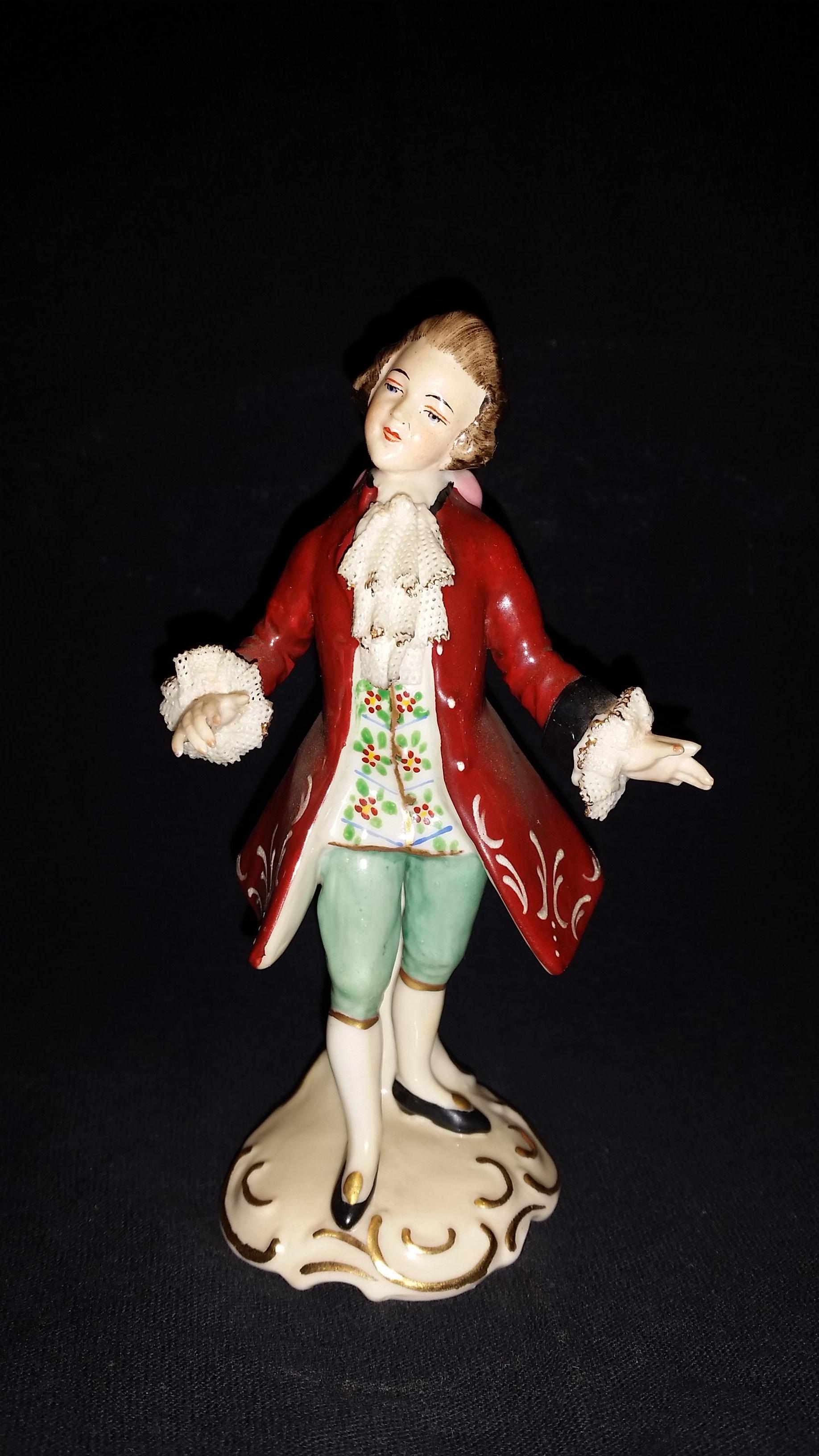 I have a Frankenthal dresden figurine with the numbers 521 & 14 stamped on bottom. He is in good shape with no chips anywhere.