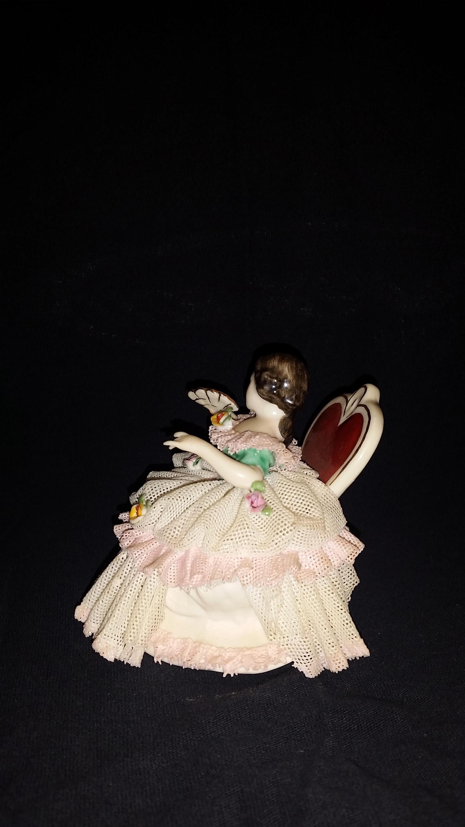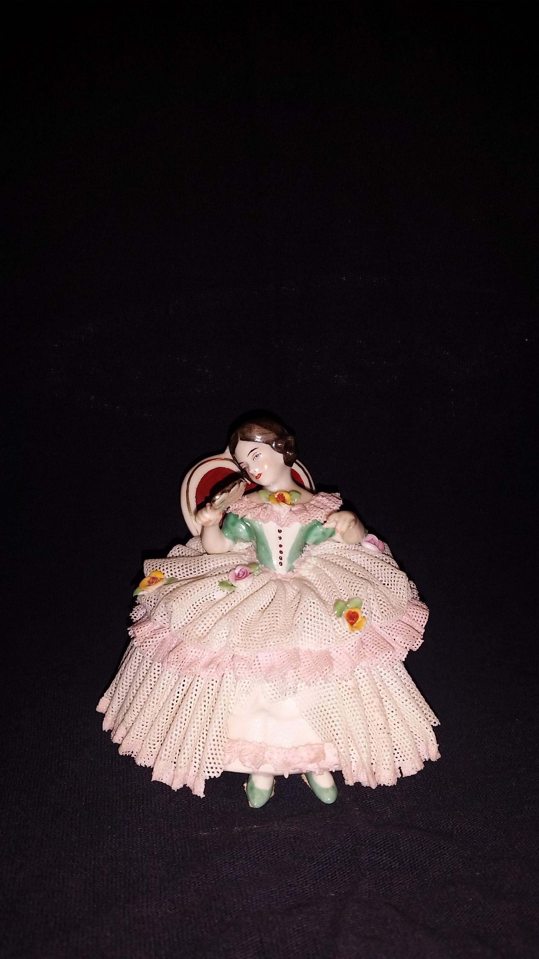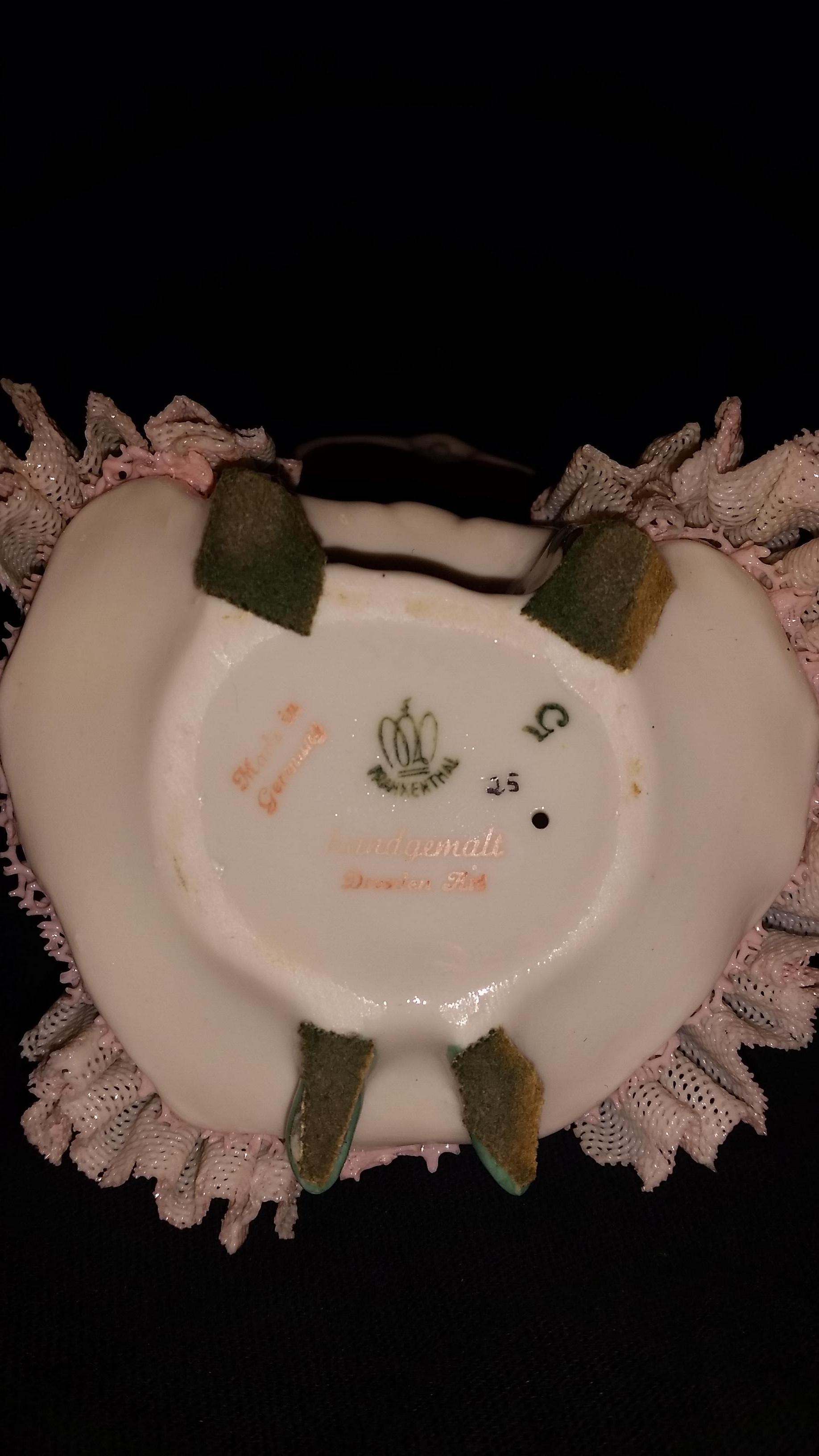 I have a Frankenthal dresden figurine that has the numbers 25 & 5 stamped on bottom. Some pieces of her skirt are broken.