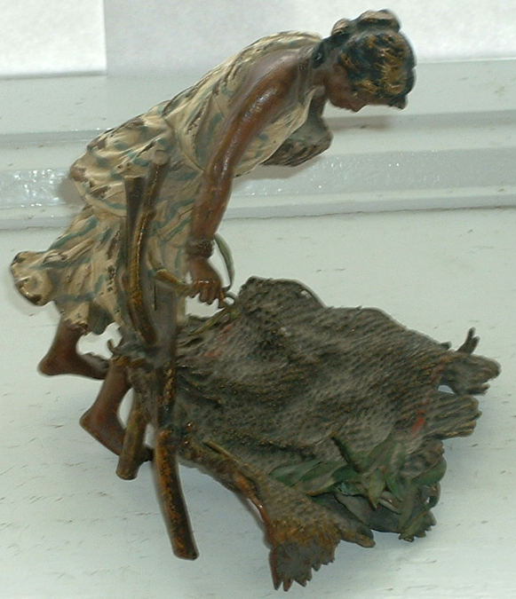 I think this might be a Franz Bergman cold painted bronze figure but have not been able to find another one like this on the internet. I'm looking for information on this as far as when it was made, if it has a name attached to this or a model #, and also an estimated value.