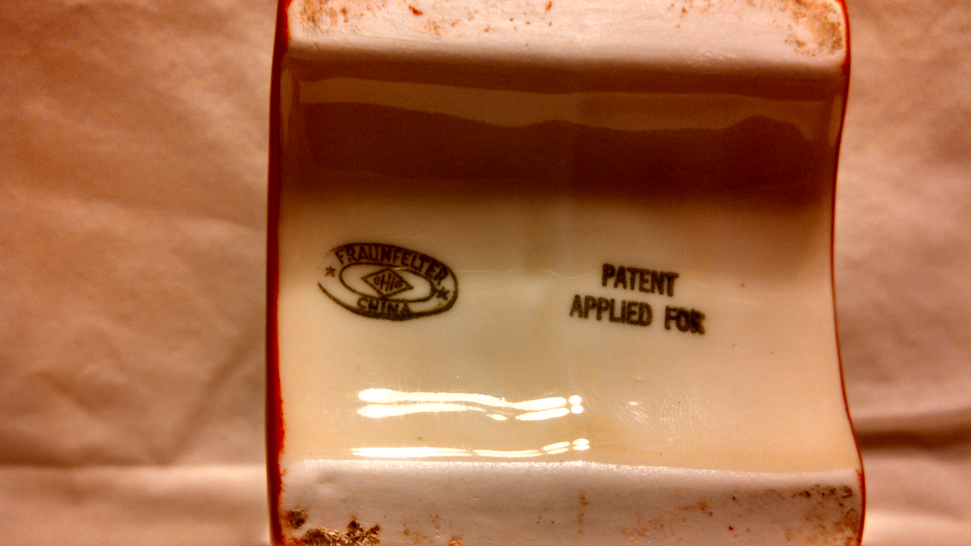 In 1915, Charles Fraunfelter purchased a failing Ohip Pottery Company that produced kitchenware, mixing bowls, and bean pots. Fraunfelter turned it into a China company that would make China for the kitchen. In 1925, the company changed the Fraunfelter China company so this means that your teapot is dated between 1925 to 1939. The company filed for bankruptcy in 1939 and went out of business.