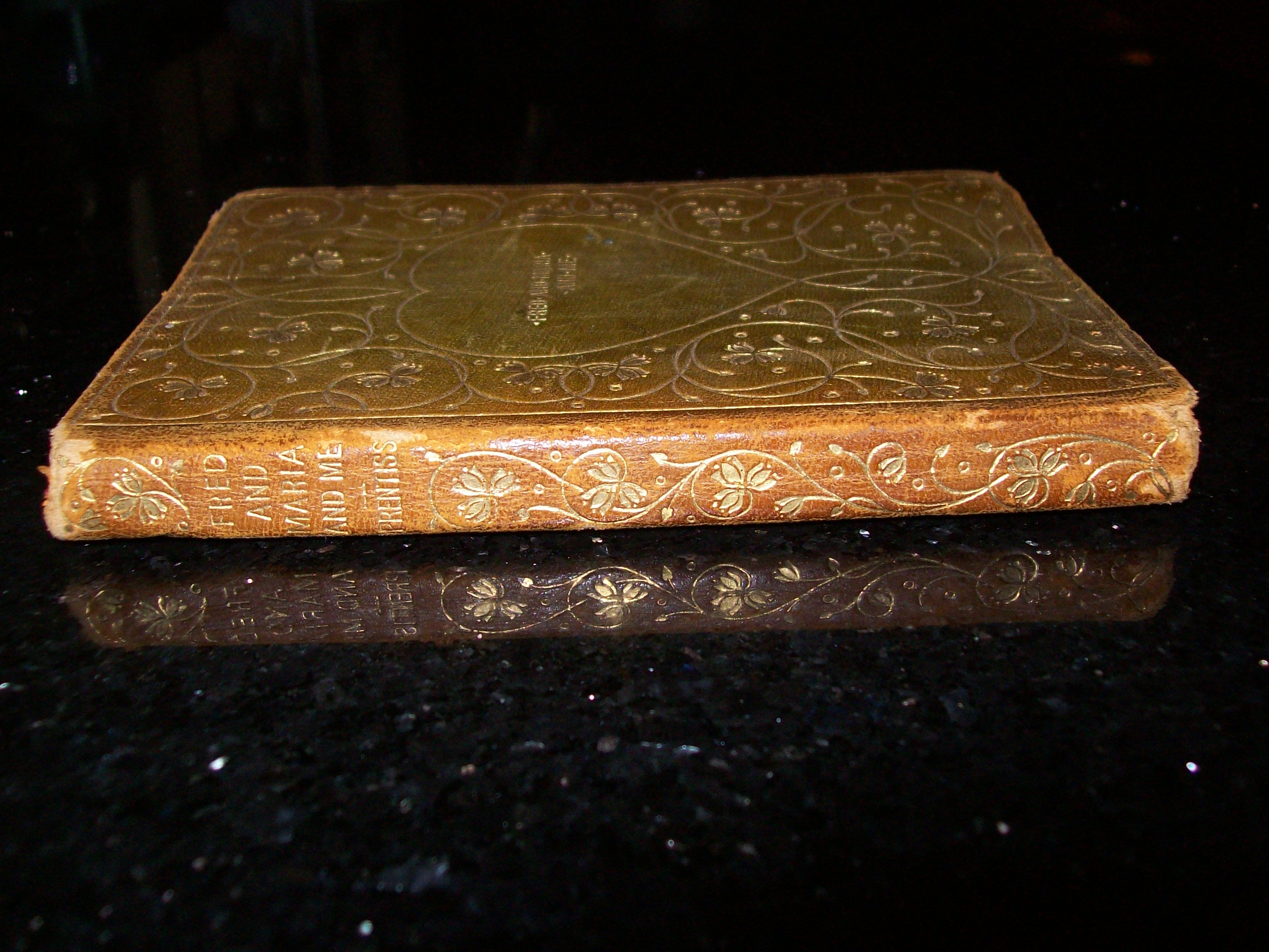 This book appears to have a leather cover embossed with goldleaf design and wording. The edges of the pages also have goldleaf on them.