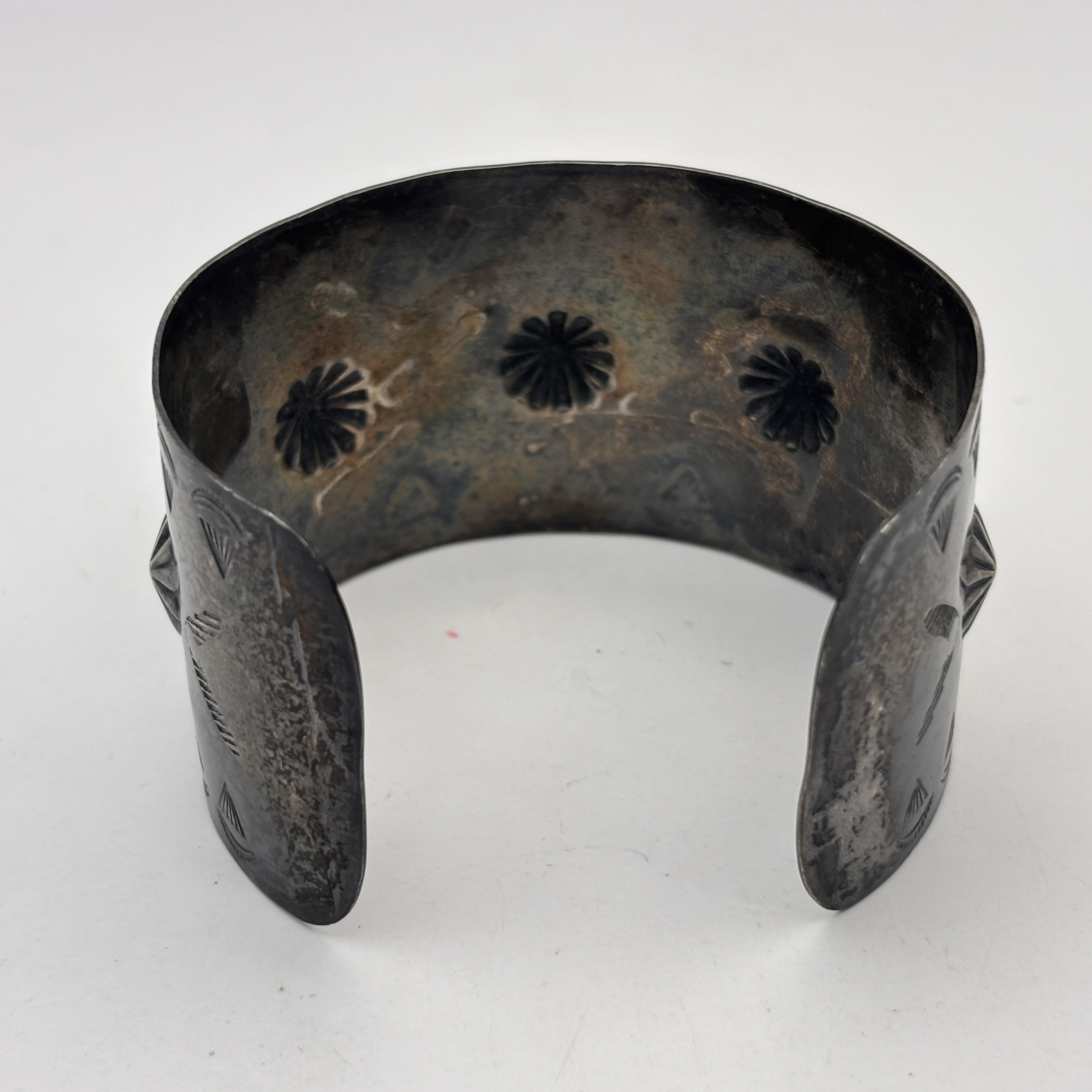 Fred Harvey Era Navajo Sterling Repousse Cuff. Made by Navajo Artisan. Unlock the full appraisal for complete details.