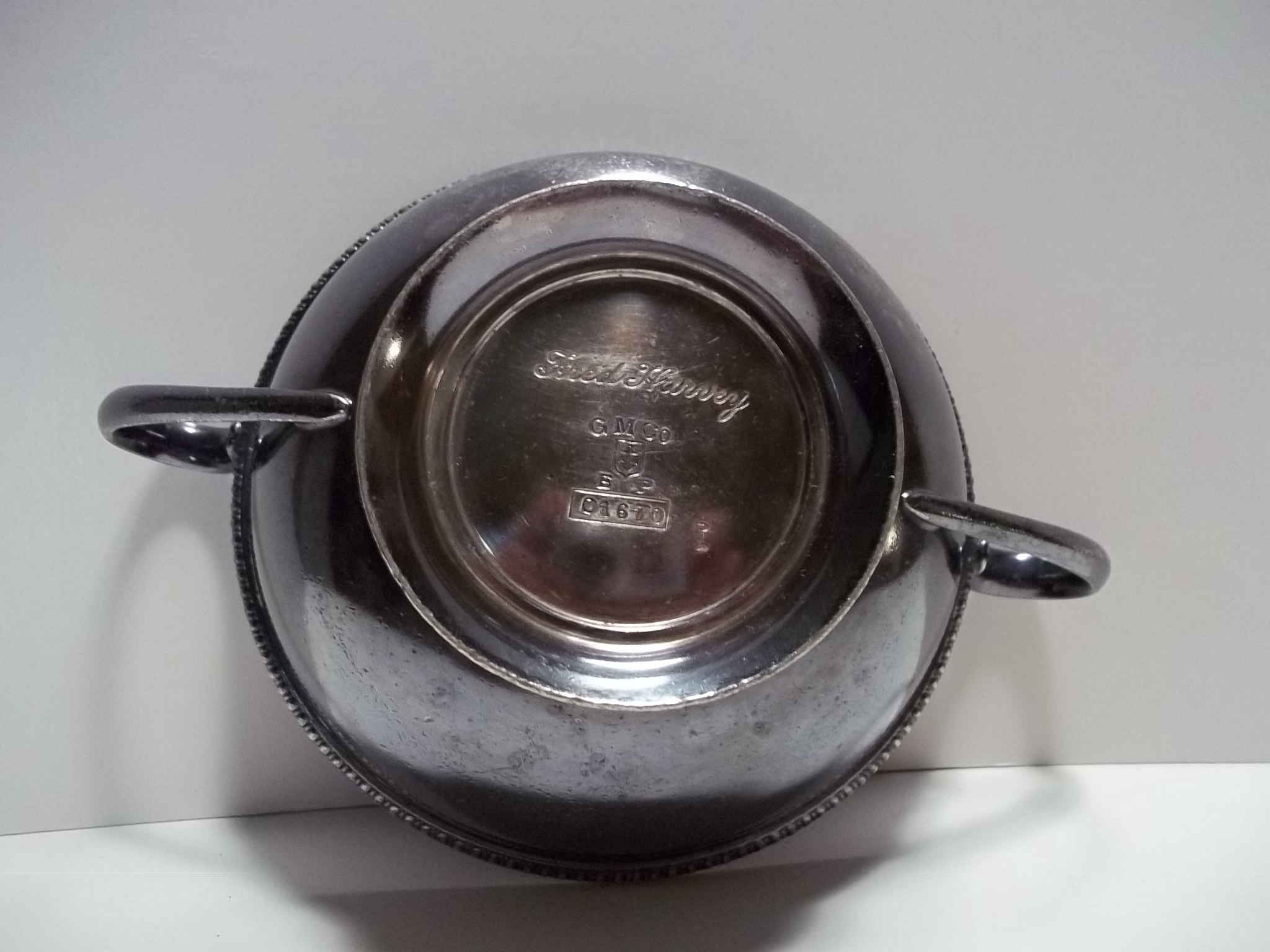 Fred Harvey silver plated candy dish, 1965,used. This item came from a Fred Harvey restraunt "The Spinning Wheel" in Hinsdale,IL. in 1965. It is in good condition but does have some pitting in the bottom of the bowl. Sold as is, no return.