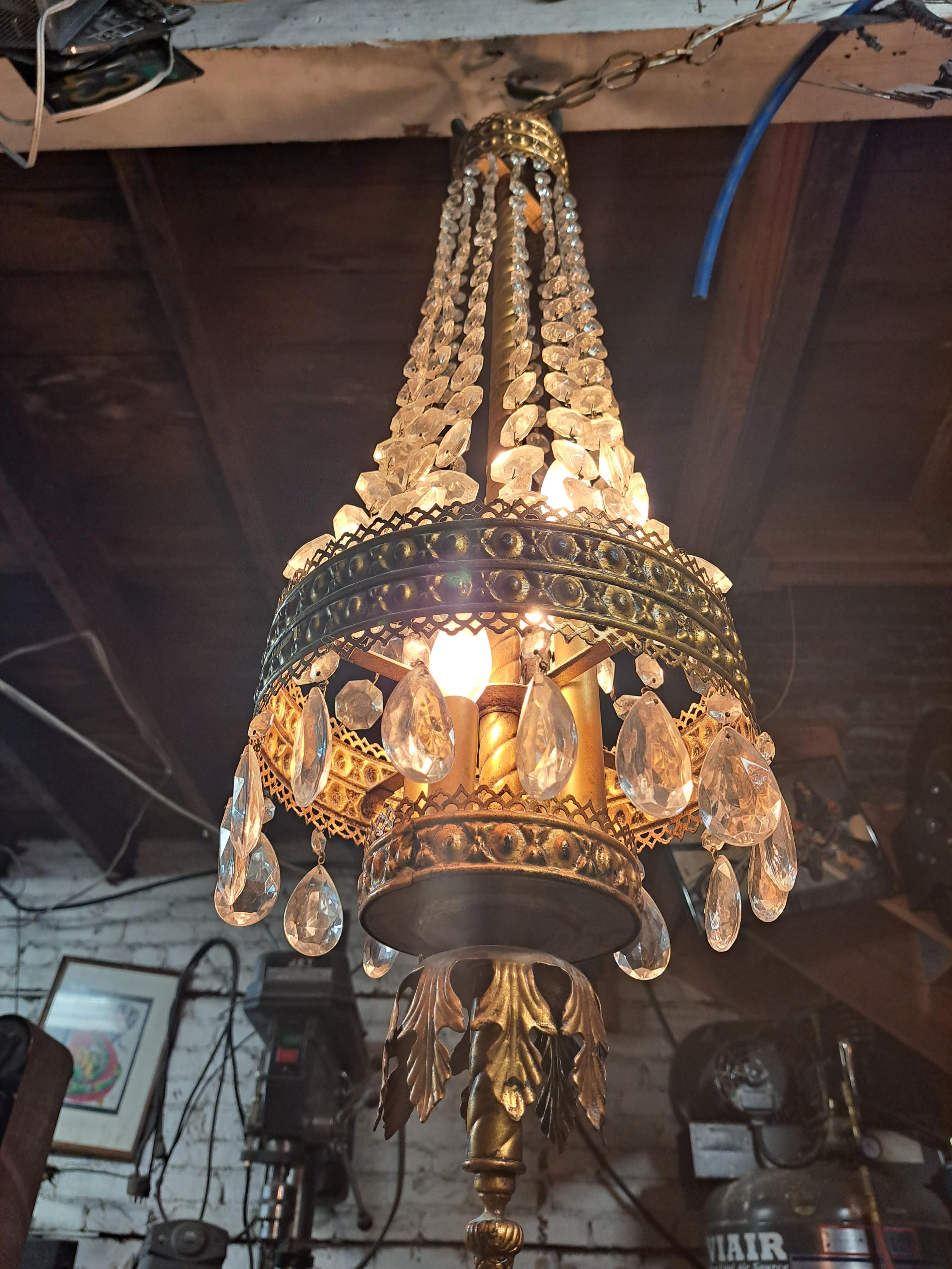 Tiered 4 light cut tear drop crystal stranded basket Chandelier, by Fredrick Ramond